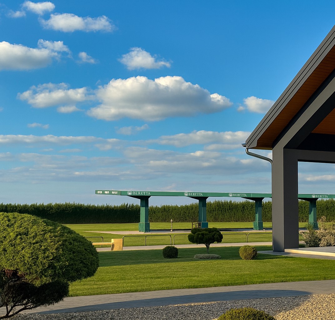Srce kompleksa čine tri strelišta projektovana prema međunarodnim pravilima olimpijske discipline. Poligoni su orijentisani ka severu radi stabilnih svetlosnih uslova i smanjenja odsjaja, što je bitno za treniranje i takmičarske režime. Pored terena izveden je i letnji pomoćni objekat sa pratećim sadržajima, kako bi sportska infrastruktura mogla da radi nezavisno od ugostiteljskog dela.