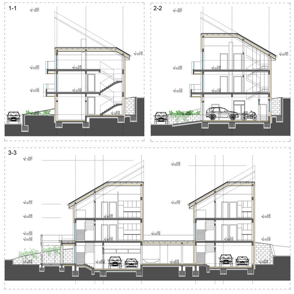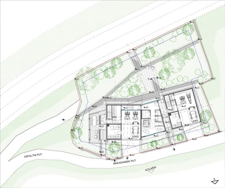 Prizemlja nisu namenjena stanovanju već zajedno sa okućnicom formiraju kaskadni podijum namenjen dodatnim sadržajima.