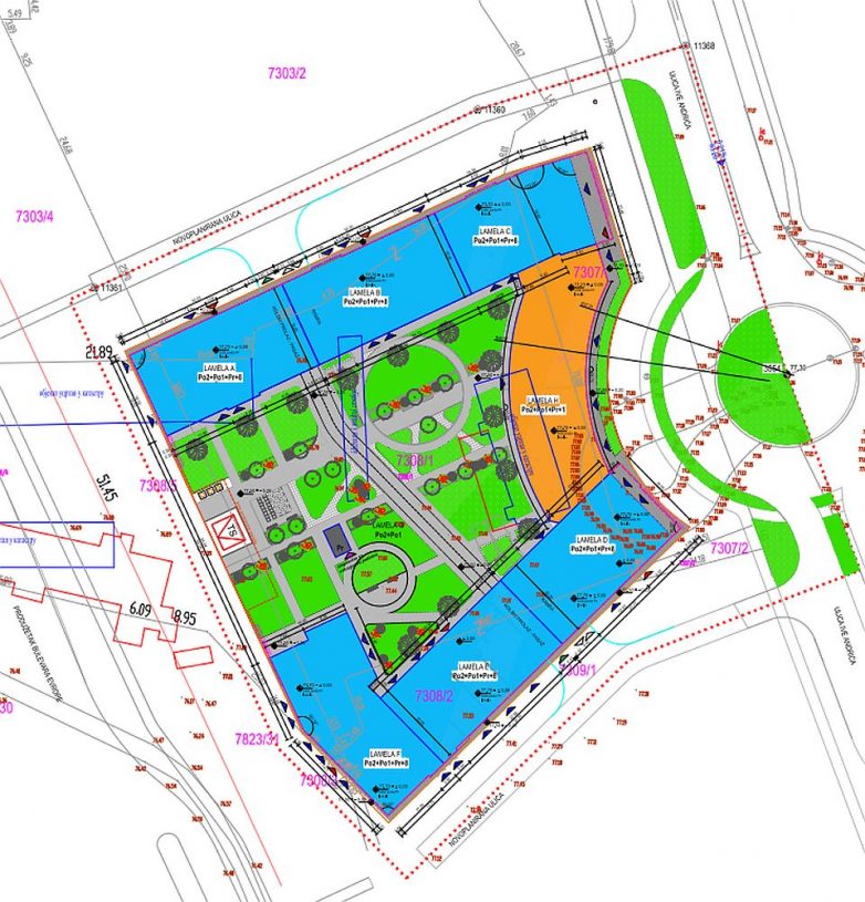 Kako je navedeno u dokumentaciji, objekti će formirati poluotvorene blokove. Šest lamela planirane su kao višeporodični stambeni objekti sa poslovanjem na etaži prizemlja, dok će jedna lamela biti u potpunosti namenjena za poslovanje.