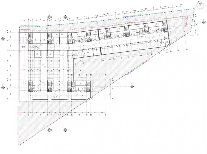 Na frontu prema integrisanoj površini u parteru predviđena su dva lokala, dok su sve ostale nadzemne površine predviđene za stanovanje.