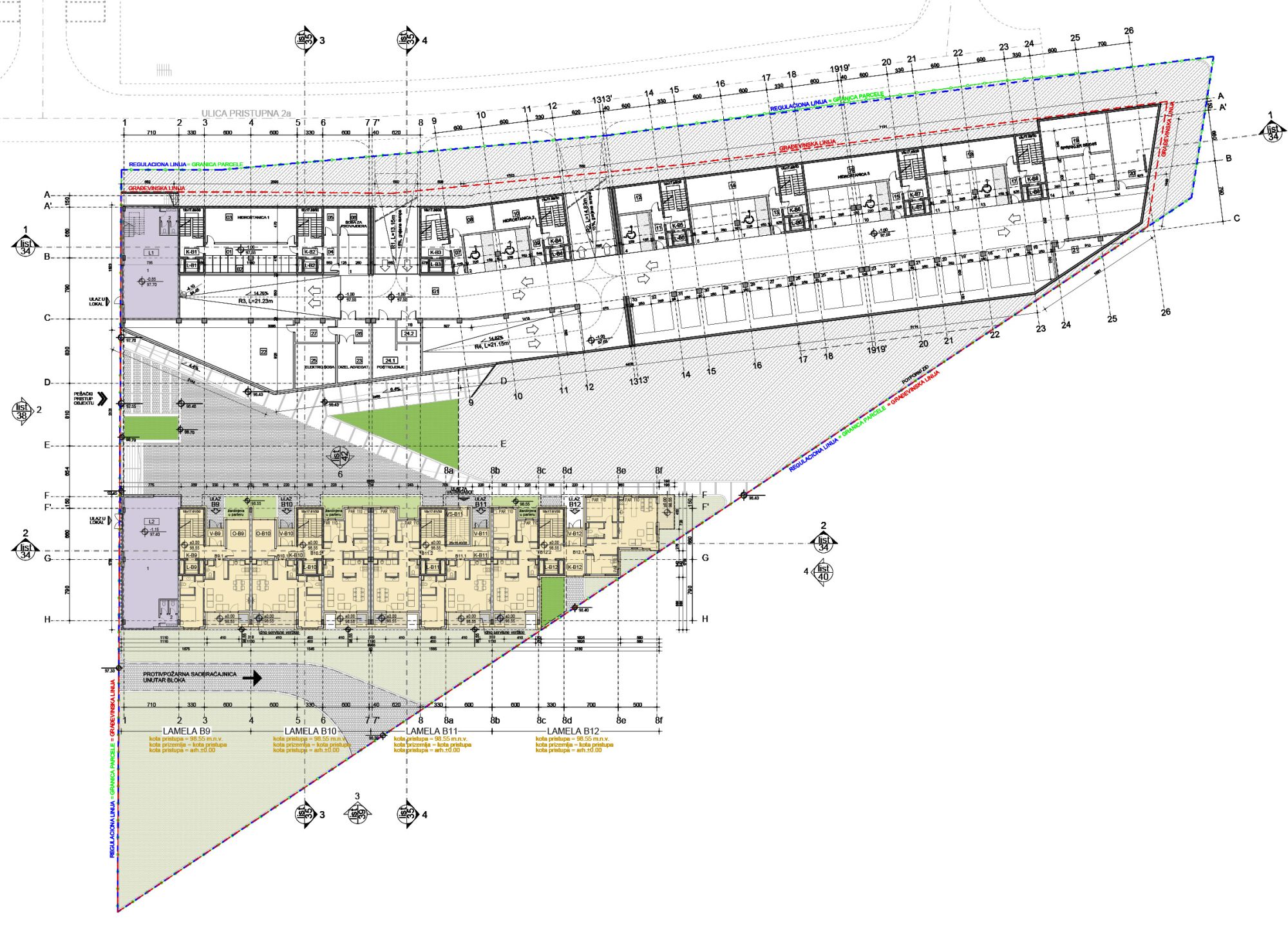 Na građevinskoj parceli GP B3 planirana je izgradnja stambeno-poslovnog objekta koji se sastoji od dvanaest lamela. Spratnost lamela se kreće od 2Po+Su+P+3+Ps do 2Po+P+3+Ps.