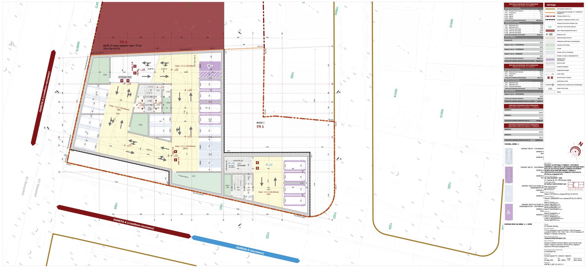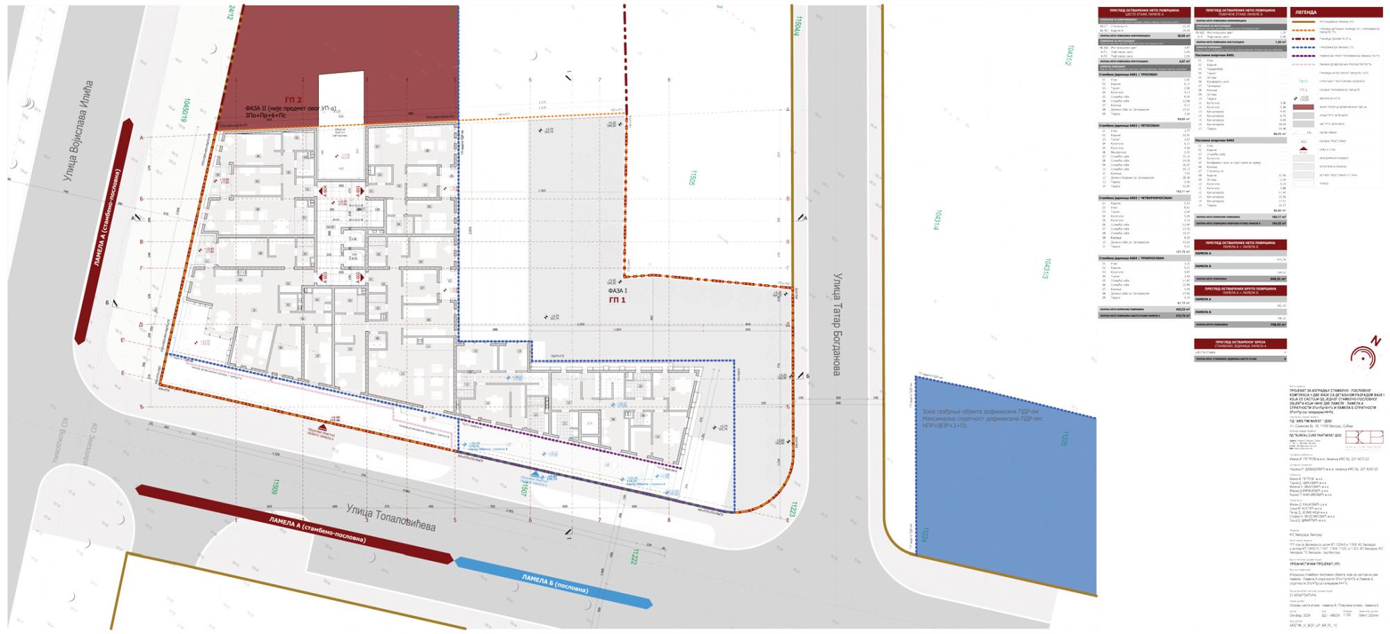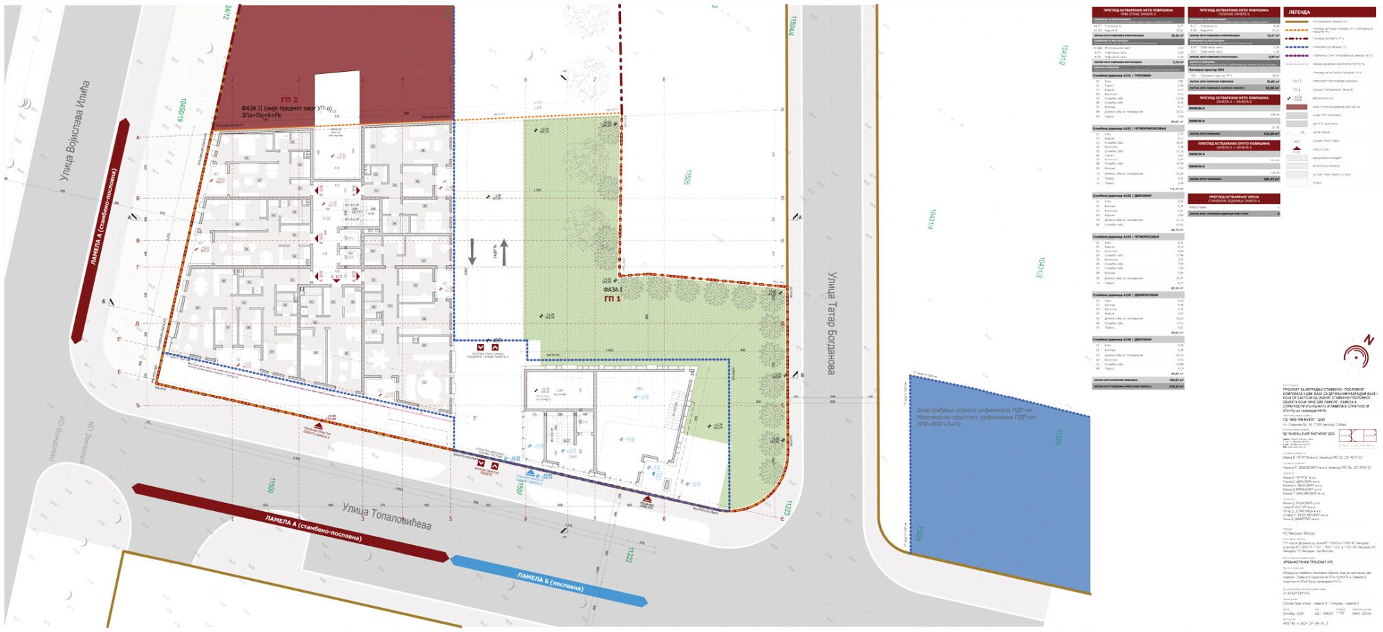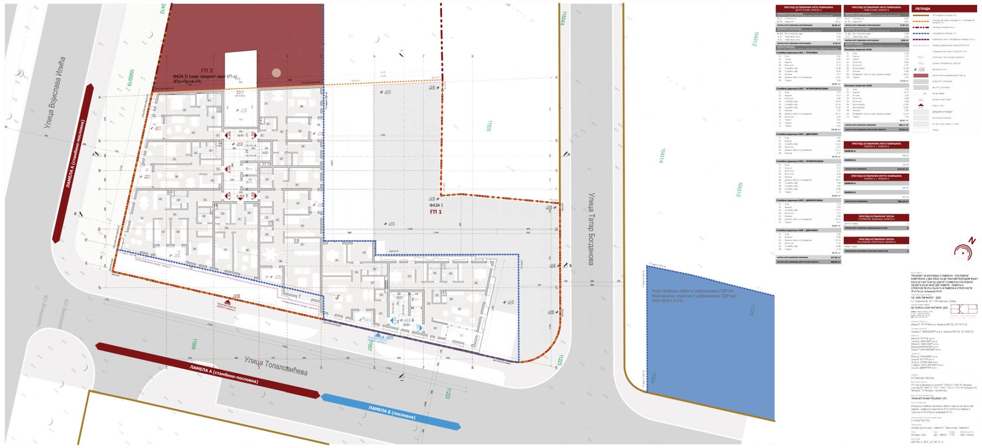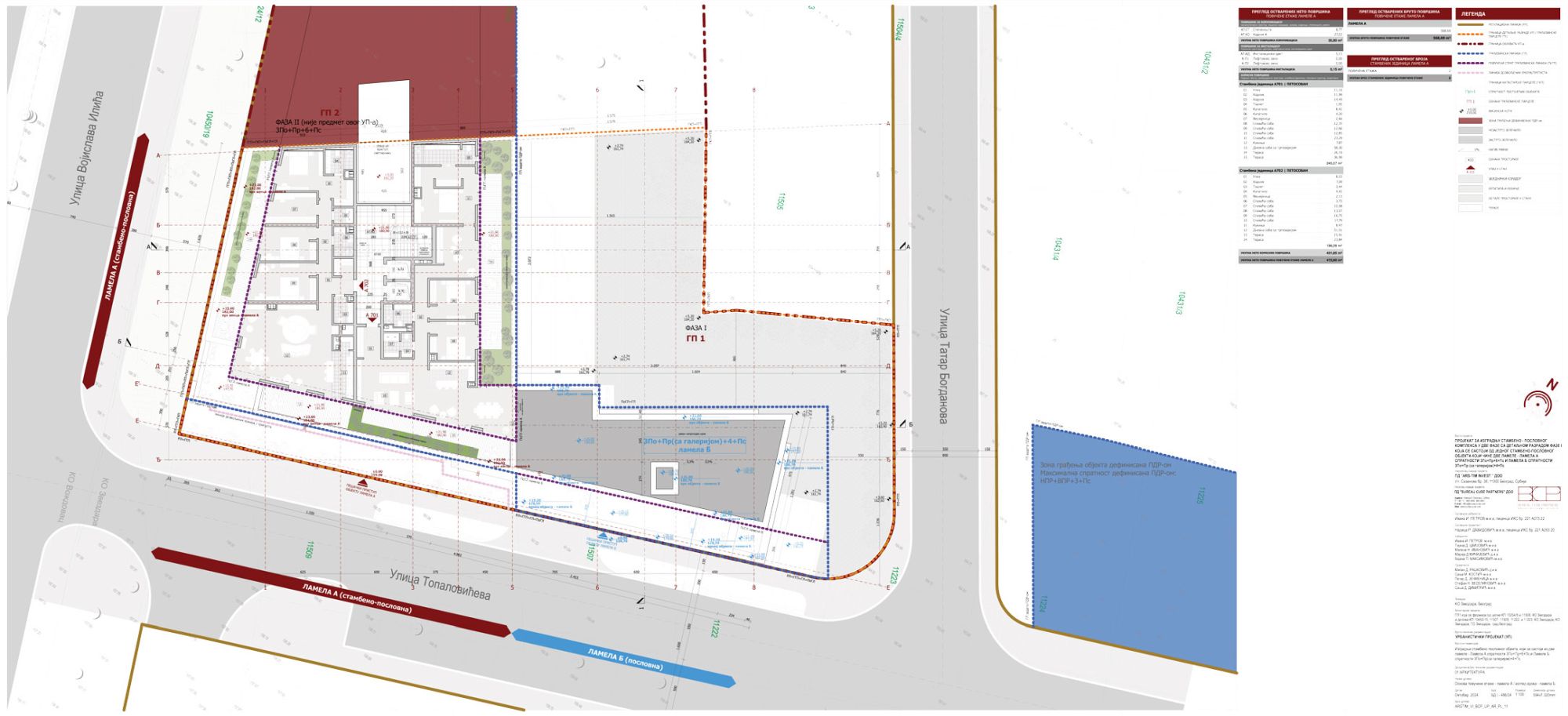 Planom su definisane dve faze. Faza 1 obuhvata stambeno-poslovni objekat koji se sastoji iz dve lamele, i to Lamele A spratnosti 3Po+Pr+6+Ps i Lamele B spratnosti 3Po+Pr (sa galerijom)+4+Ps.