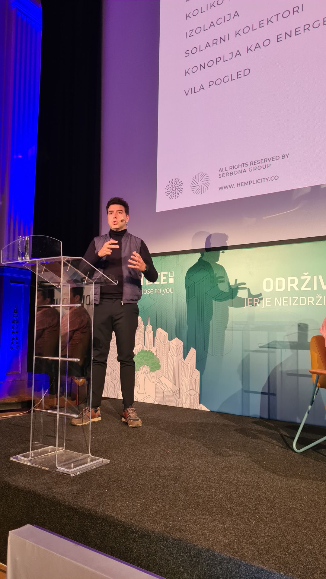 14.43 – Kao uvod u poslednju diskusiju na konferenciji BuildUp, Predrag Milosavljević predstavlja projekat prve kuće od konoplje u Srbiji.