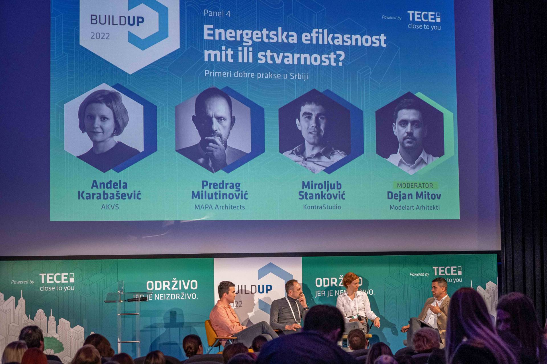 Dejan Mitov vodio je panel o energetskoj efikasnosti porodičnih kuća. Njegovi sagovornici bilo su Anđela Karabašević (AKVS Arhitektura), Predrag Milutinović (MAPA Architects) i Miroljub Stanković (KontraStudio).