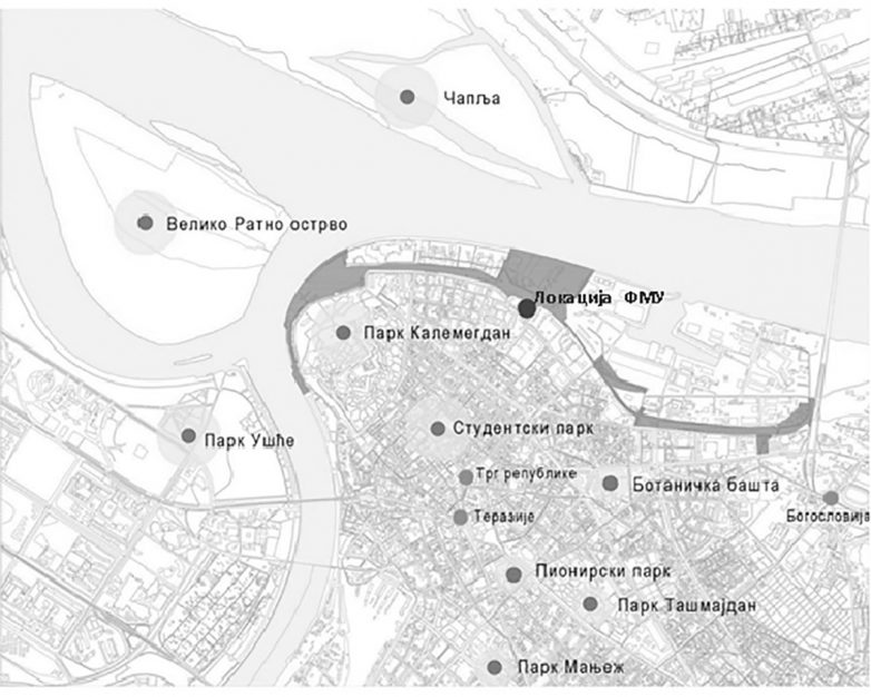 Planirana izgradnja nove zgrade Fakulteta muzičke umetnosti predviđena u rubnim zonama donjeg dela Dorćola, uz budući linearni park (transformacija zone uz železničku prugu koja nije više u funkciji) u blizini Pančićevog parka i Marine Dorćol u ulici Dunavskoj. Lokacija je dobro saobraćajno povezana sa glavnim gradskim saobraćajnicama čime je omogućena dobra povezanost i sa ostalim širim delovima grada.