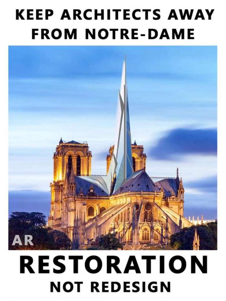 Na stranici Architectual Revival napominju da se u javnosti, od ponedeljka kada je katedralu zadesio razarajući požar, pojavio niz arhitektonskih članaka koji osporavaju pozive za obnovu katedrale i jačaju želju određenog dela struke da se napravi nešto bezdušno i ružno.