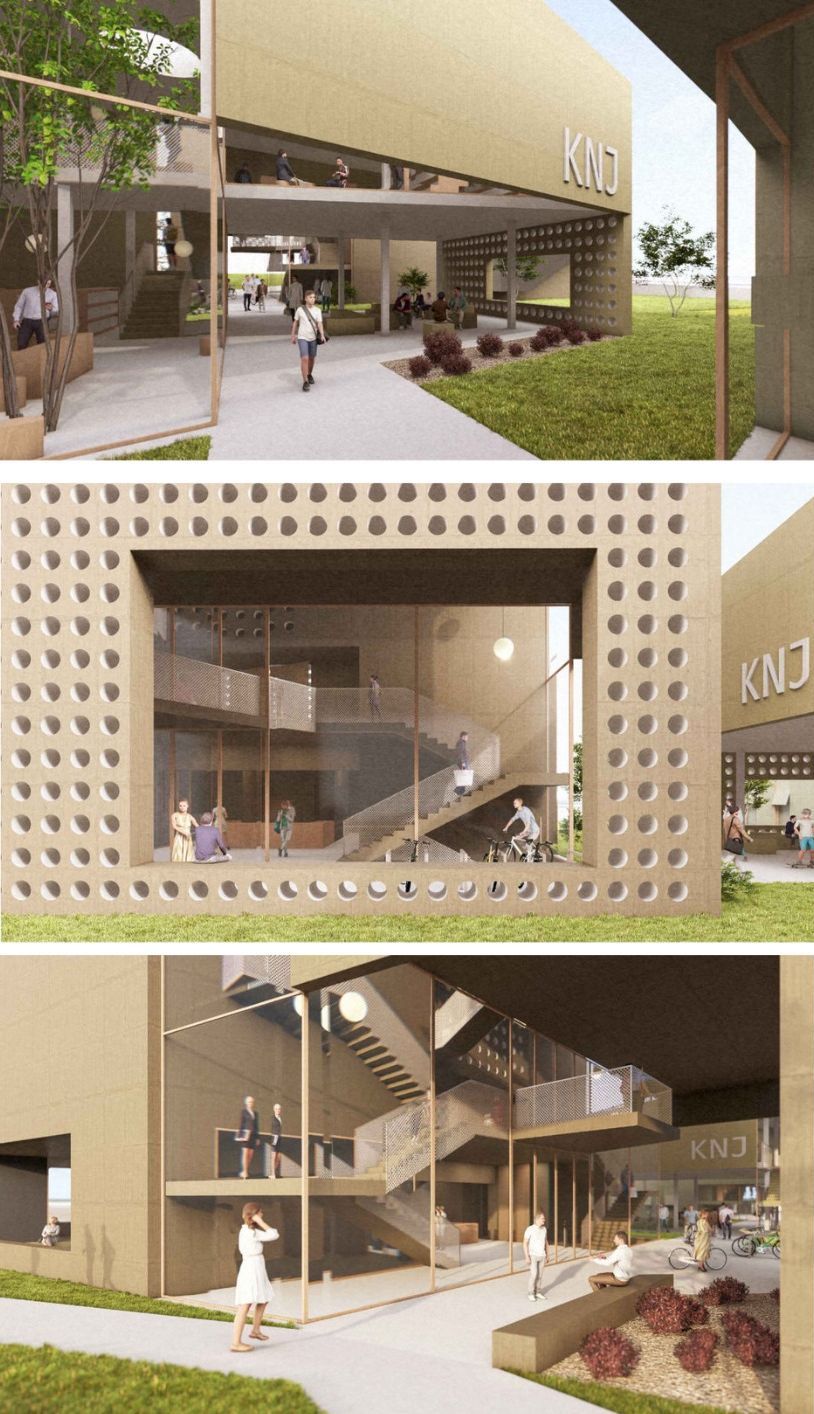 Kao poseban kvalitet rada ističu su se natkriveni ulazi, mahom različitog karaktera, koji postaju mali natkriveni trgovi. „To su prostori za boravak, druženje, čekanje, pa čak i potencijalna ekstenzija unutrašnjeg prostora. Njihova zajednička ideja je ostvarenje vizuelne komunikacije prema unutrašnjosti pojedinih namena“, navodi žiri i dodaje: