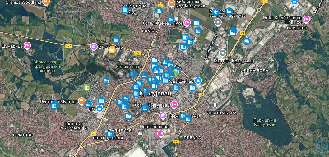 Iz navedenih razloga, na području Kragujevca interesantna su ulaganja i u stanogradnju, te su na tom polju dešavanja vrlo intenzivna. Na našoj Mapi gradilišta označili smo 55 gradilišta aktivna u tekućoj 2025. godini, a najveći deo udeo pripada stanogradnji. S obzirom da je satelitski snimak ovog grada ažuriran u martu ove godine, građevinska aktivnost na Mapi odgovara realnom stanju na terenu.