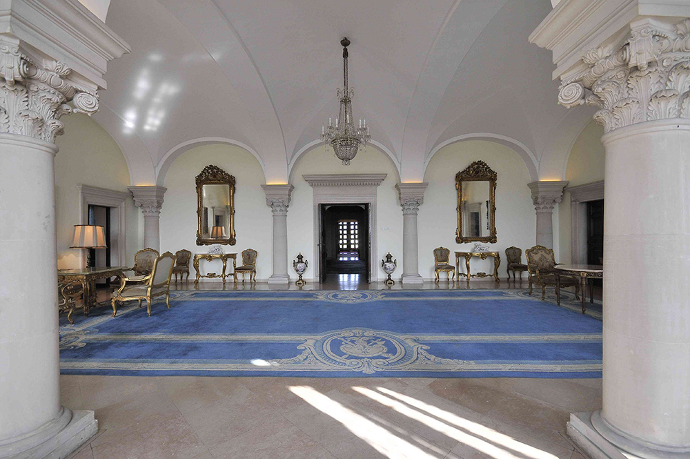 Plavi salon, uređen u baroknom duhu, ističe se dekorativnošću ali i izuzetnom akustikom, što ga je činilo pogodnim za muzičke i svečane događaje. Zlatni salon, poznat i kao Salon Palma Vekija, sadrži vredna dela renesansne umetnosti zbog čega je možda i najreprezentativniji prostor u dvorcu.