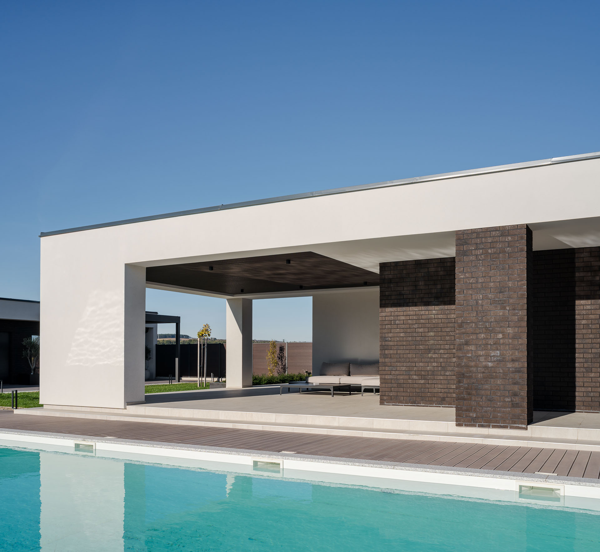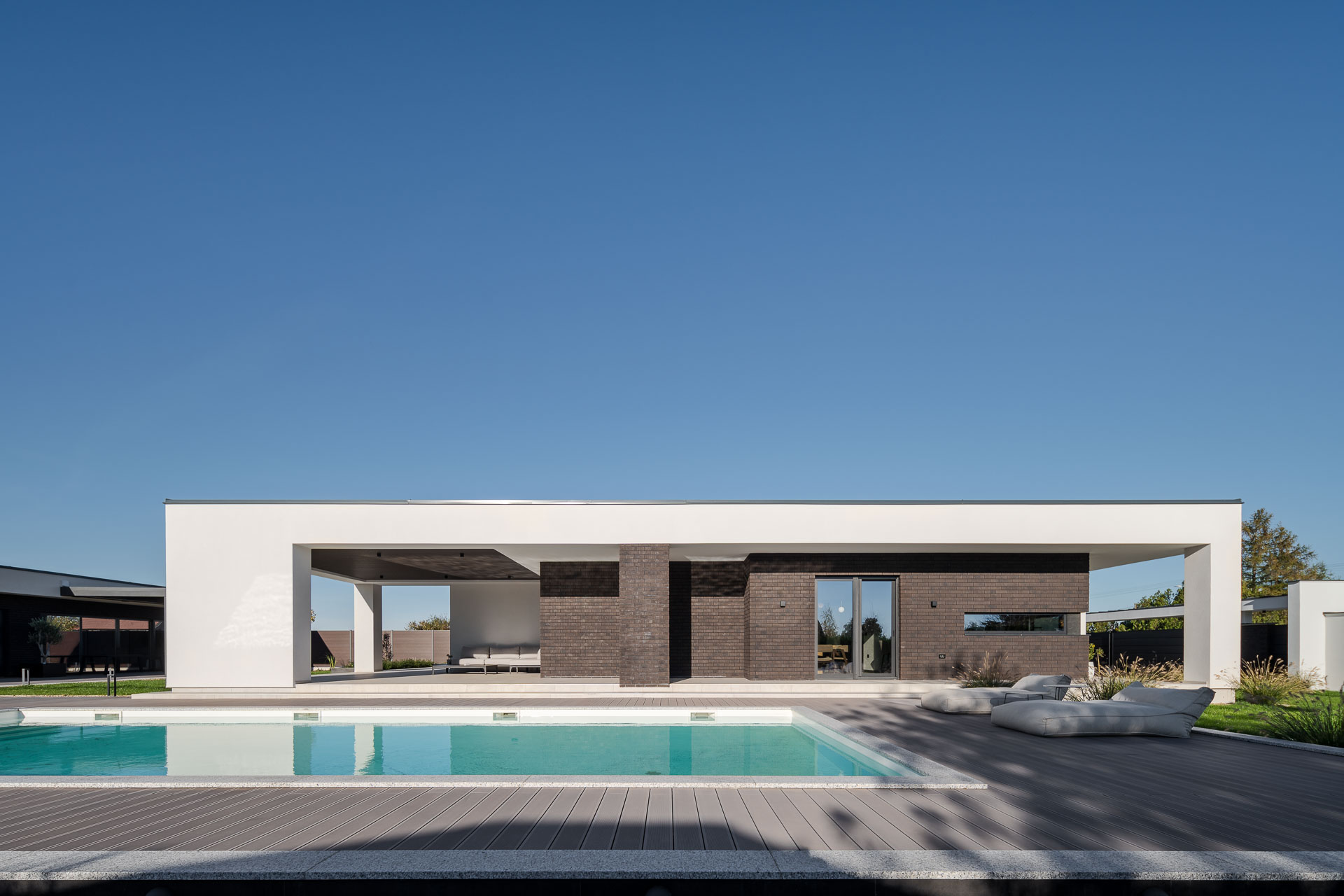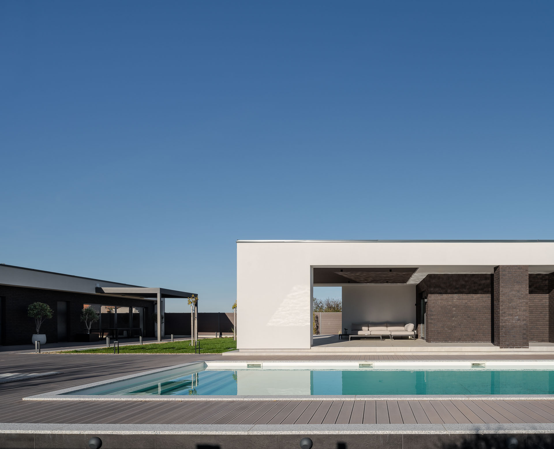 Autorski pečat ovom projektu dale su arhitekte Mladen Miladinović i Miloš Mirković iz novosadskog MOBA ARH Studija koji su na parceli od pola jutra oblikovali kuću od 330 kvadrata sa pratećim objektom i bazenom u dvorištu koji pleni svojim dimenzijama.
