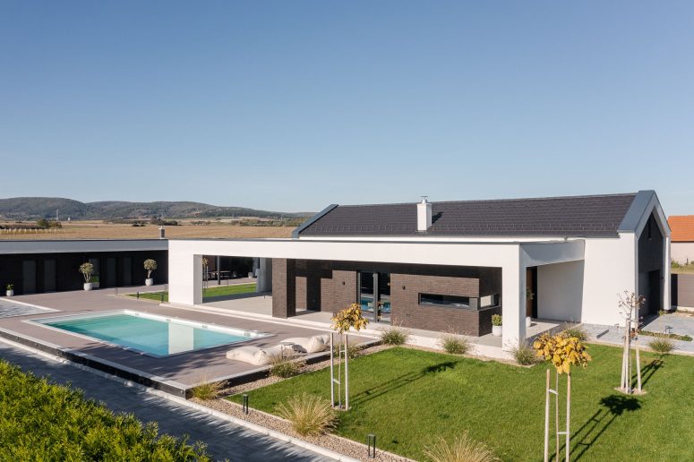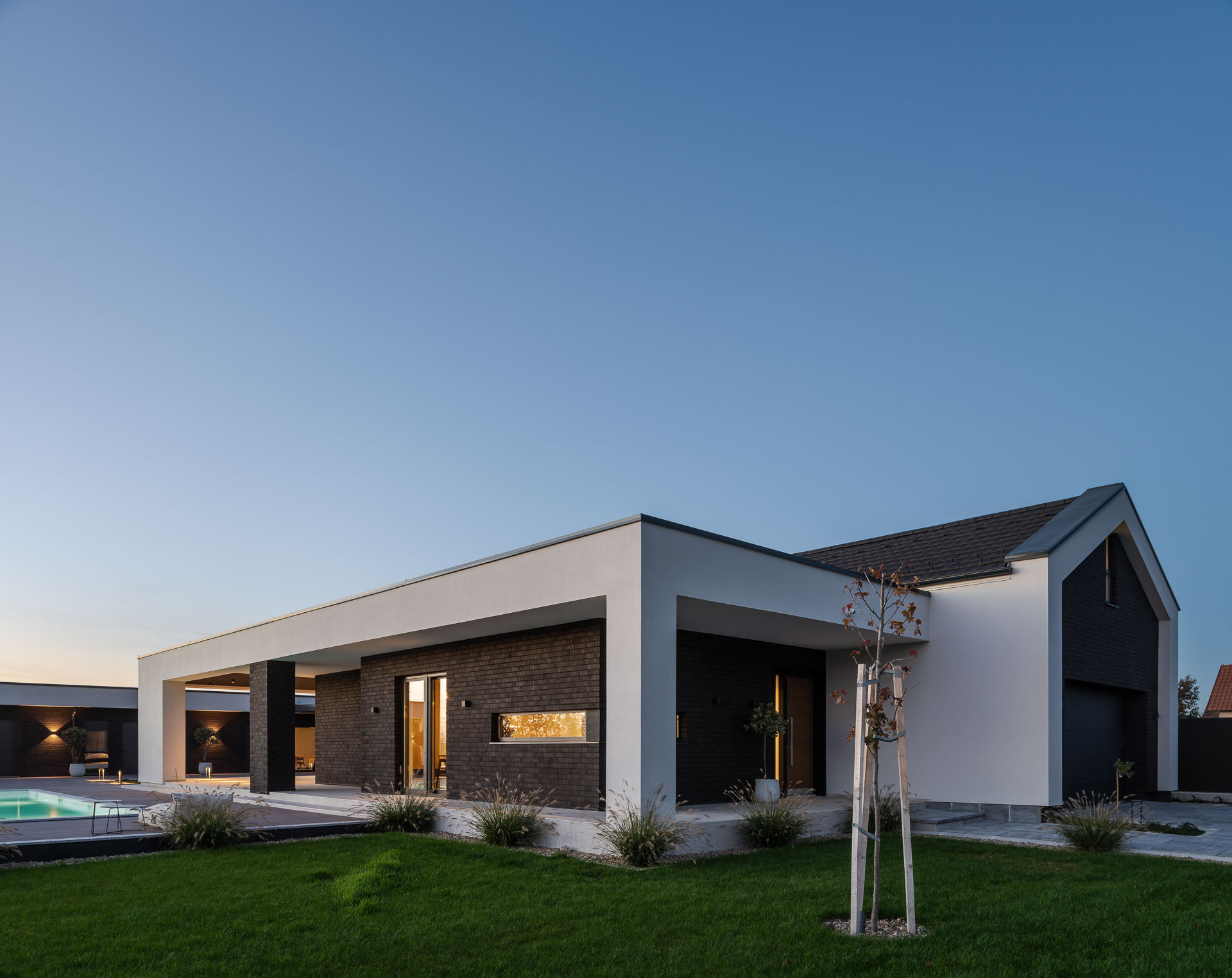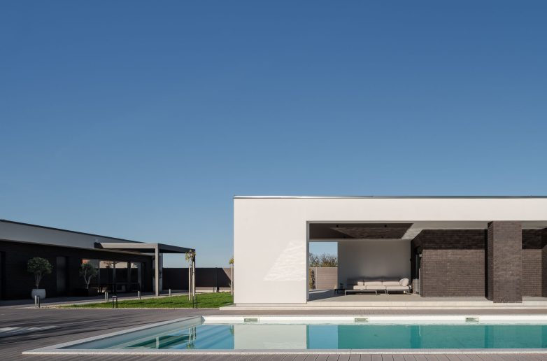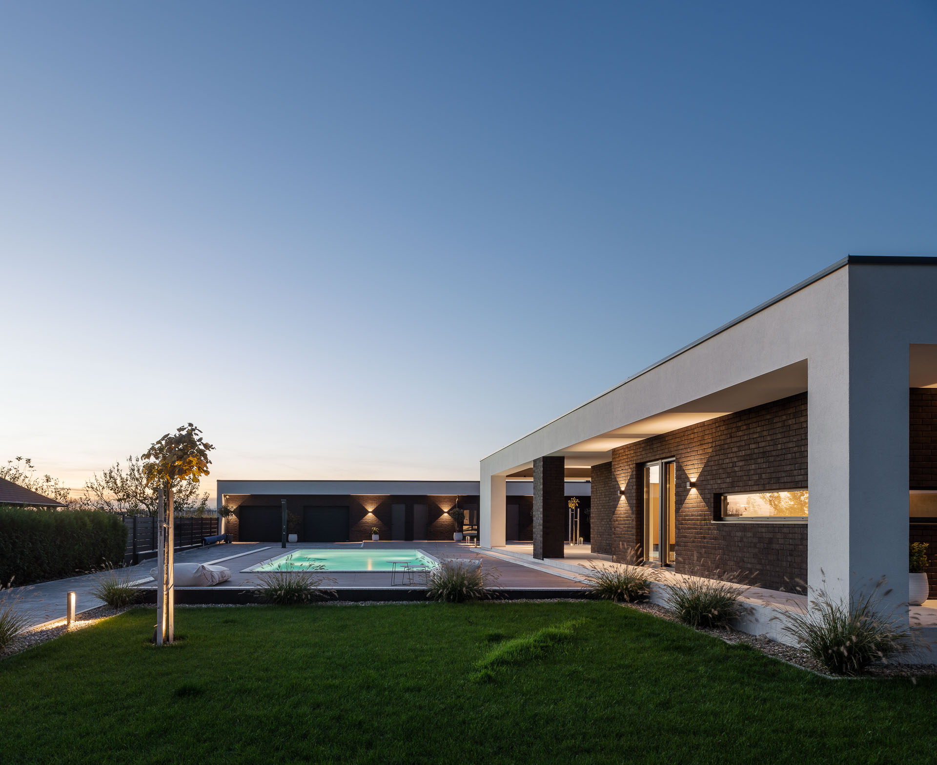 Autorski pečat ovom projektu dale su arhitekte Mladen Miladinović i Miloš Mirković iz novosadskog MOBA ARH Studija koji su na parceli od pola jutra oblikovali kuću od 330 kvadrata sa pratećim objektom i bazenom u dvorištu koji pleni svojim dimenzijama.