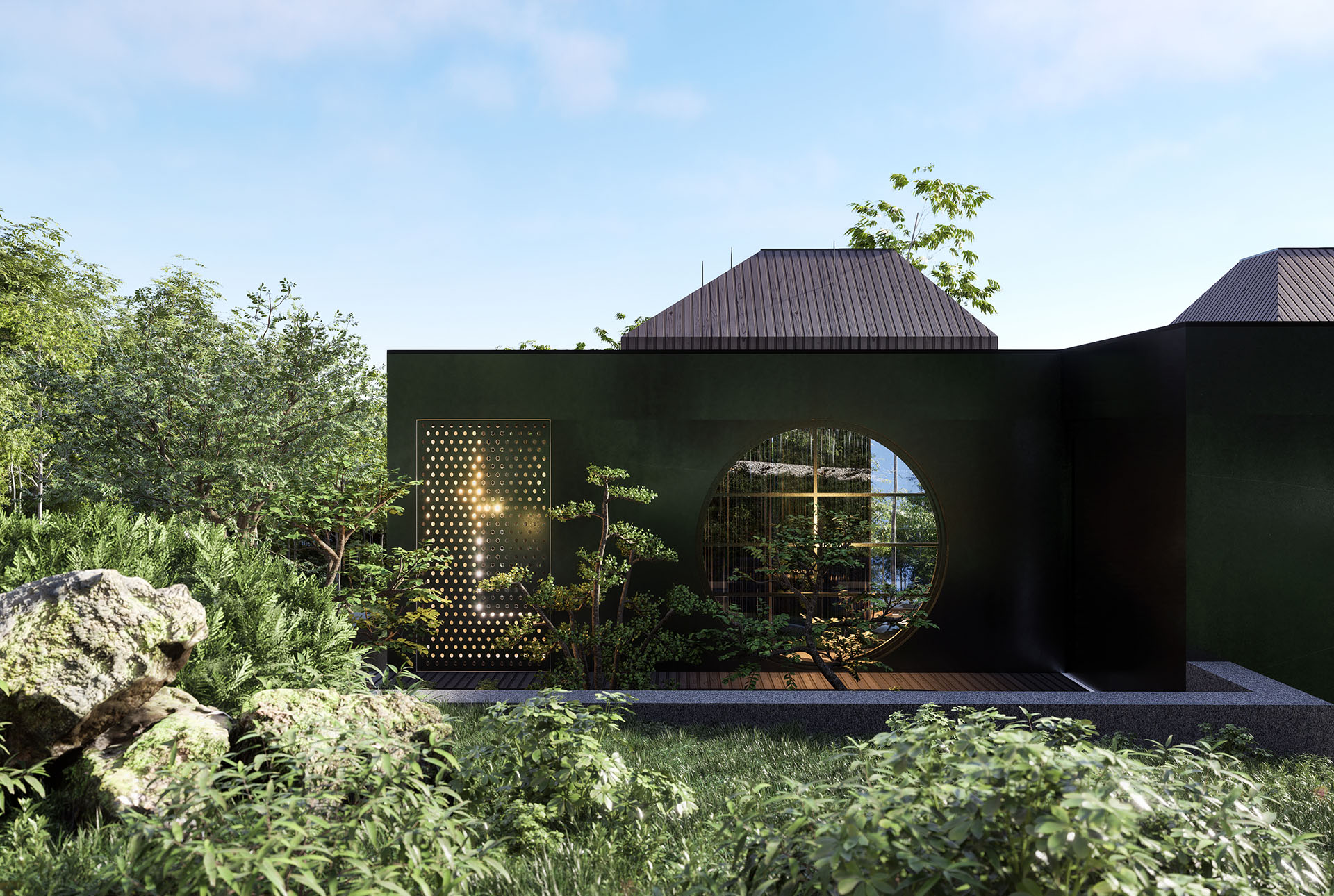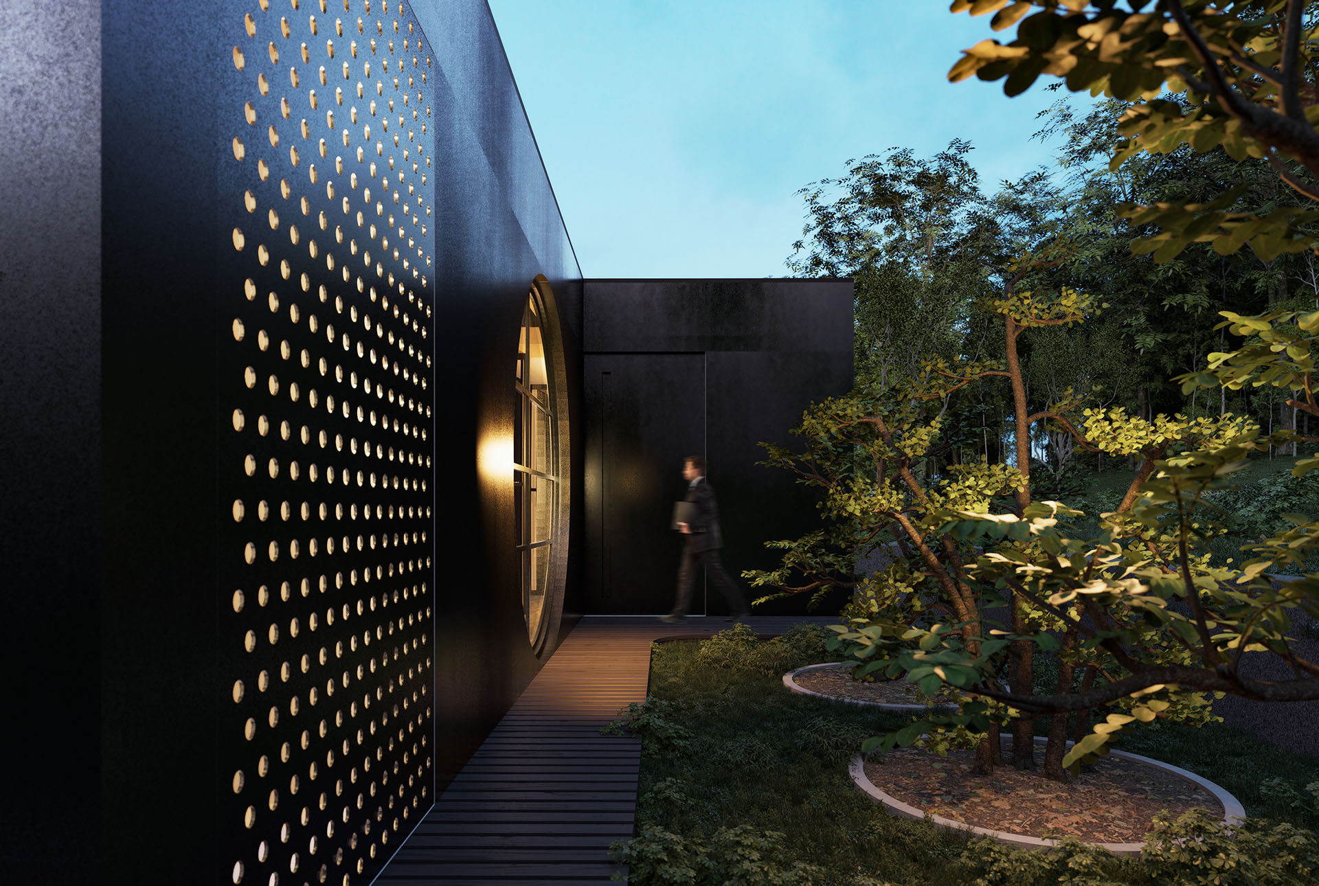 Filozofija koju objekat nastoji da delimično aktivira potiče iz interpretiranja saznanja iz tradicionalne kuće karakteristične za prostor Japana.