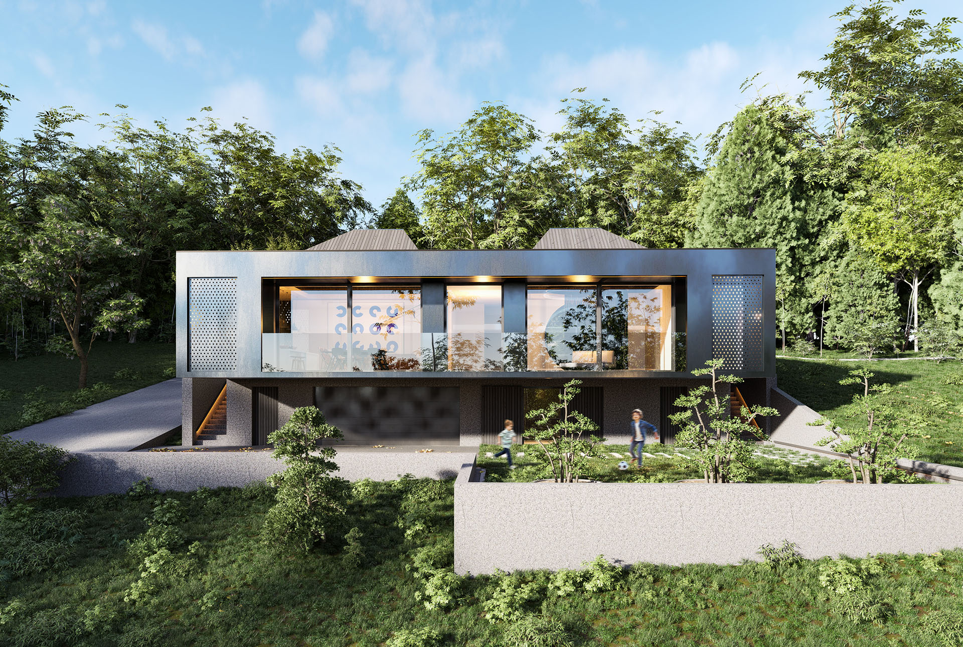 Kako za Gradnju objašnjavaju autori projekta, biro Fo4a Architecture iz Sarajeva, kuća kao fizička pojava izražava se kroz jednu jaku prostornu osobinu, s obzirom na to da se radi u varijanti crne boje, sa crnim detaljima i stolarijom.