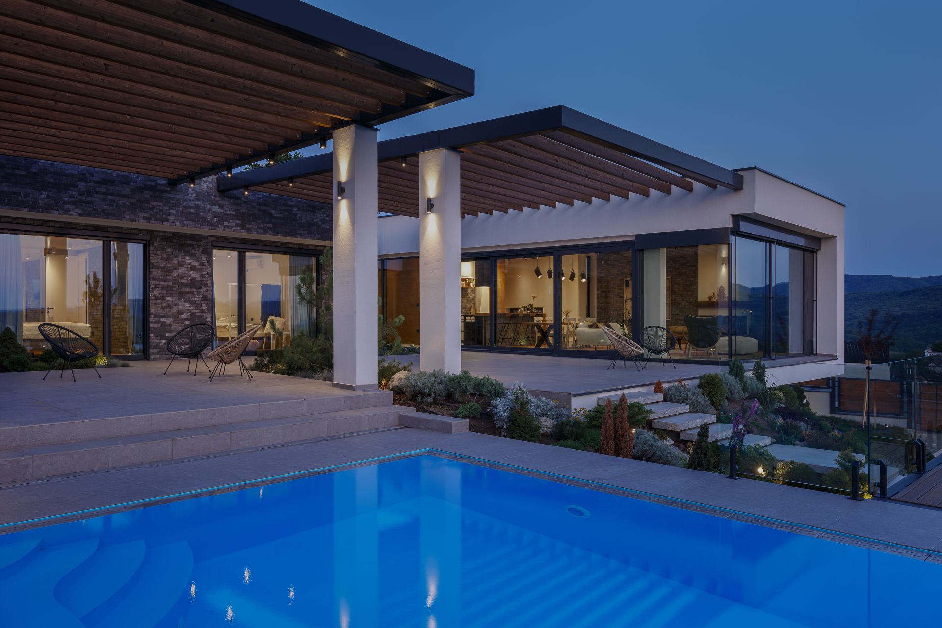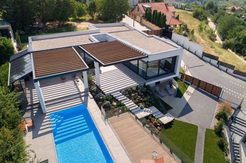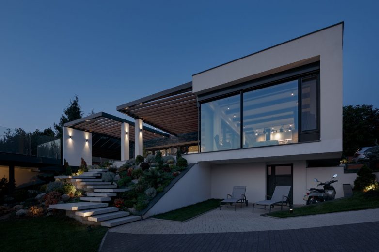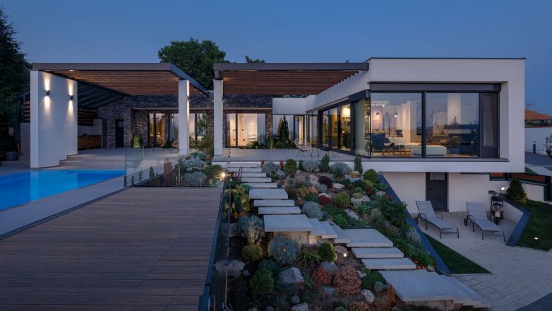 Kuća je pozicionirana na najvišem delu parcele i najbliže ulici, kako bi se omogućile najlepše vizure.
