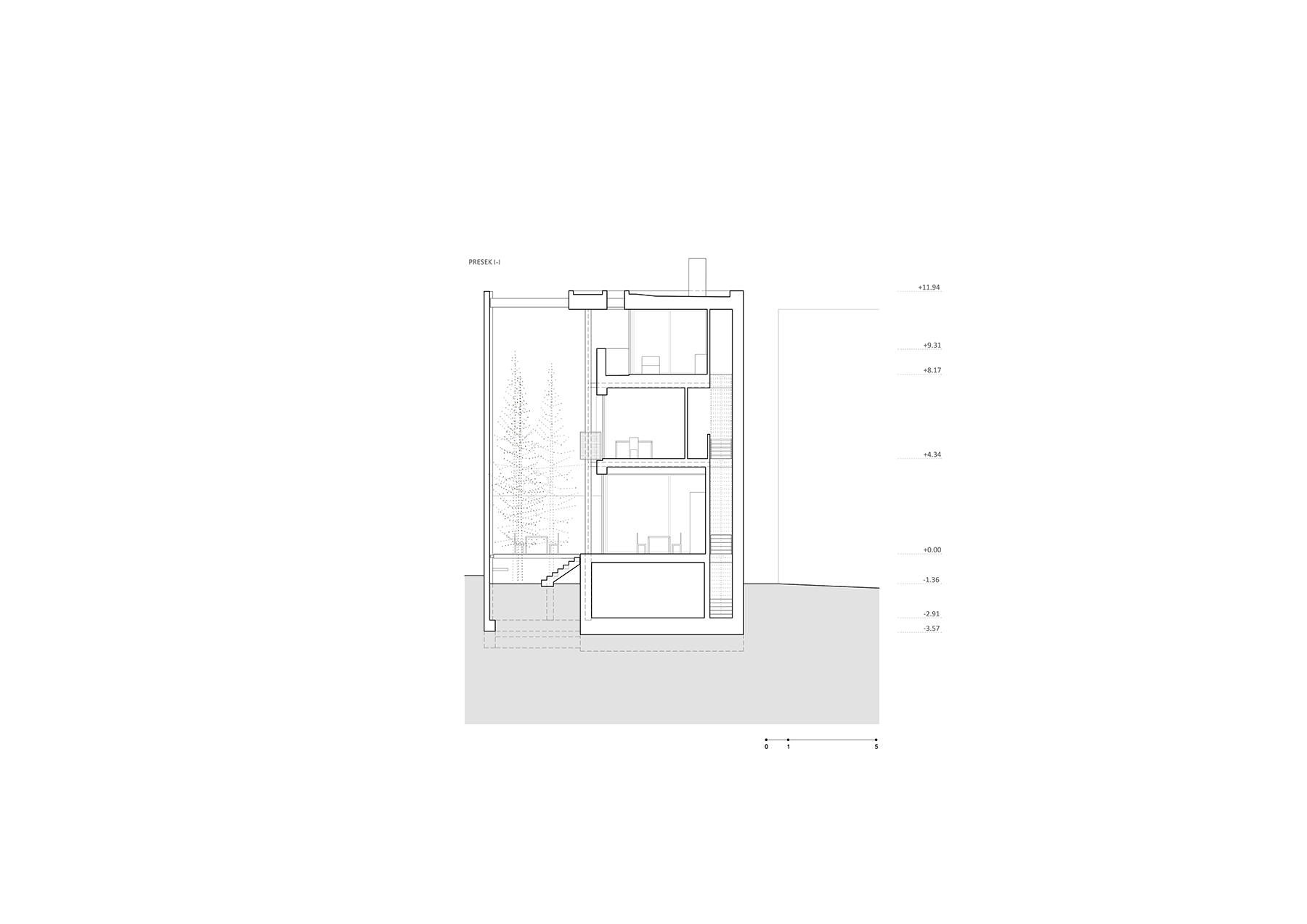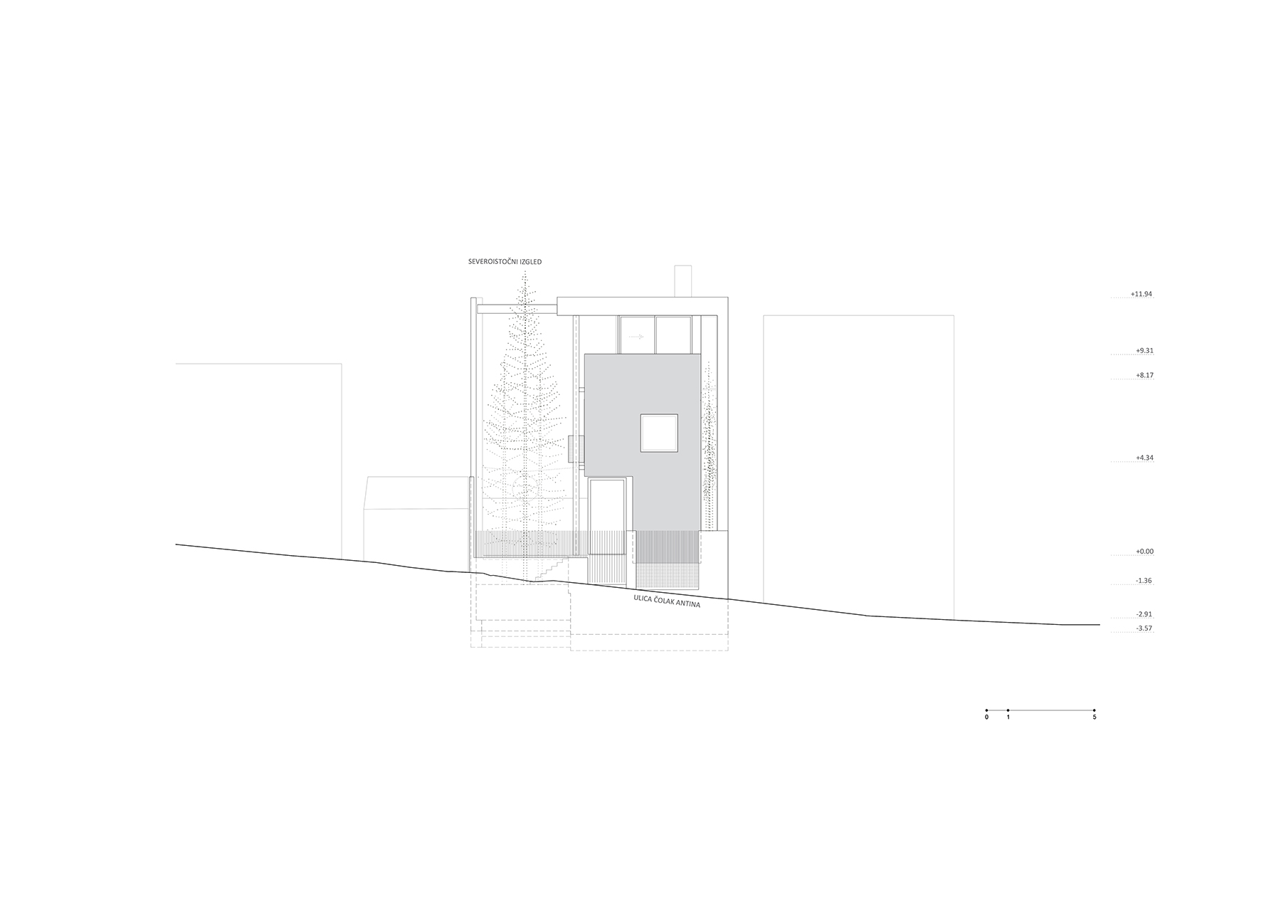 Projektovana je tako da objedinjuje funkciju porodičnog stanovanja na više nivoa, s obzirom na malu površinu parcele i potrebom za njenom maksimalnom iskorišćenošću u odnosu na urbanističke parametre i položaj građevinskih linija.