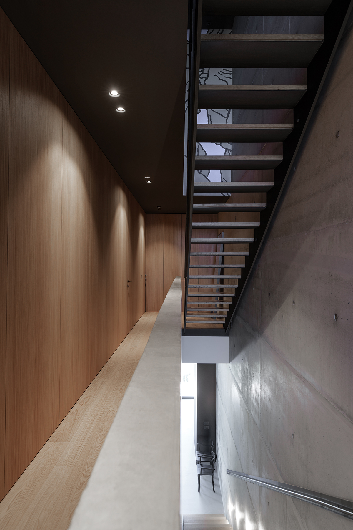 “Ta dva glavna prostorna arhitektonska elementa svojim međusobnim odnosom definišu otvoreni, ali intimni prostor unutar parcele, koji je u direktnoj vezi sa slobodnim i transparentnim prostorom prizemlja u kome su smešteni svi dnevni sadržaji, formirajući na taj način jedinstvenu funkcionalnu celinu” – objašnjava sagovornik Gradnje.
