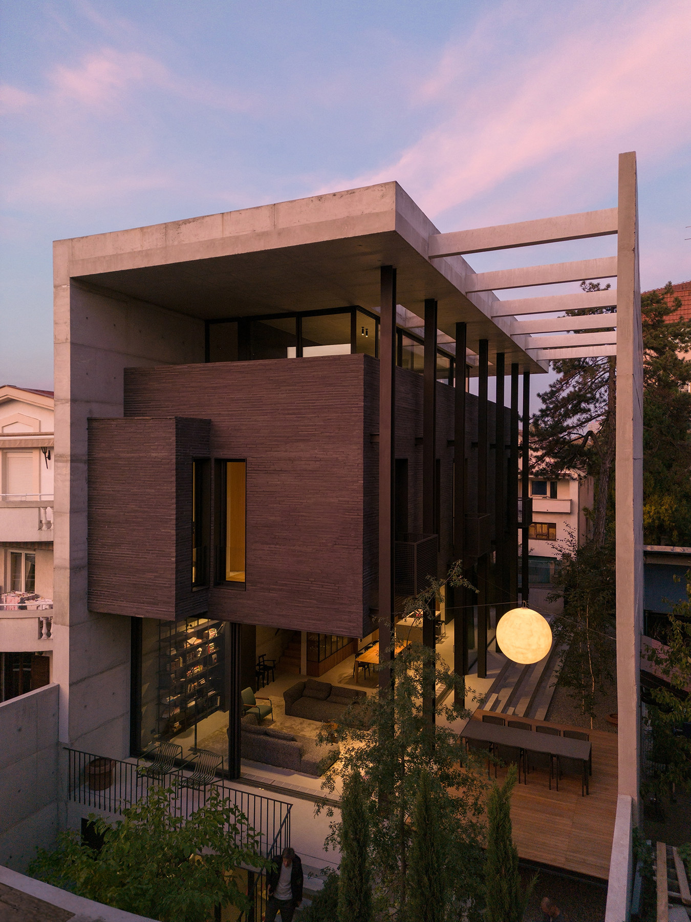 Ova monumentalna kuća od 400 bruto kvadrata arhitektonsko je delo Dejana Miljkovića, redovnog profesora na Departmanu za arhitekturu na beogradskom Arhitektonskom fakultetu, a izgrađena je 2023. godine.