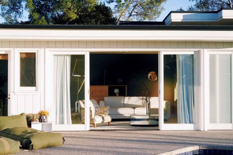 Očuvan je koncept velikih prozora od poda do plafona, koji pružaju prelep pogled na Los Anđeles, ali i zeleni travnjak sa bazenom u dvorištu.