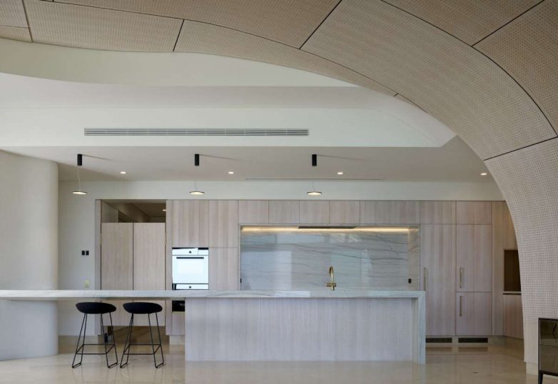U realizaciju ovih ideja upustila se arhitektonska firma Noel Robinson Architects koji su osmisli objekat nazvan Domic od čak 1.350 kvadrata koji praktično uranja u peščana brda. Sa druge strane, njeno pročelje, koje je orijentisano ka istoku, ima otvoren pogled na Pacifik.