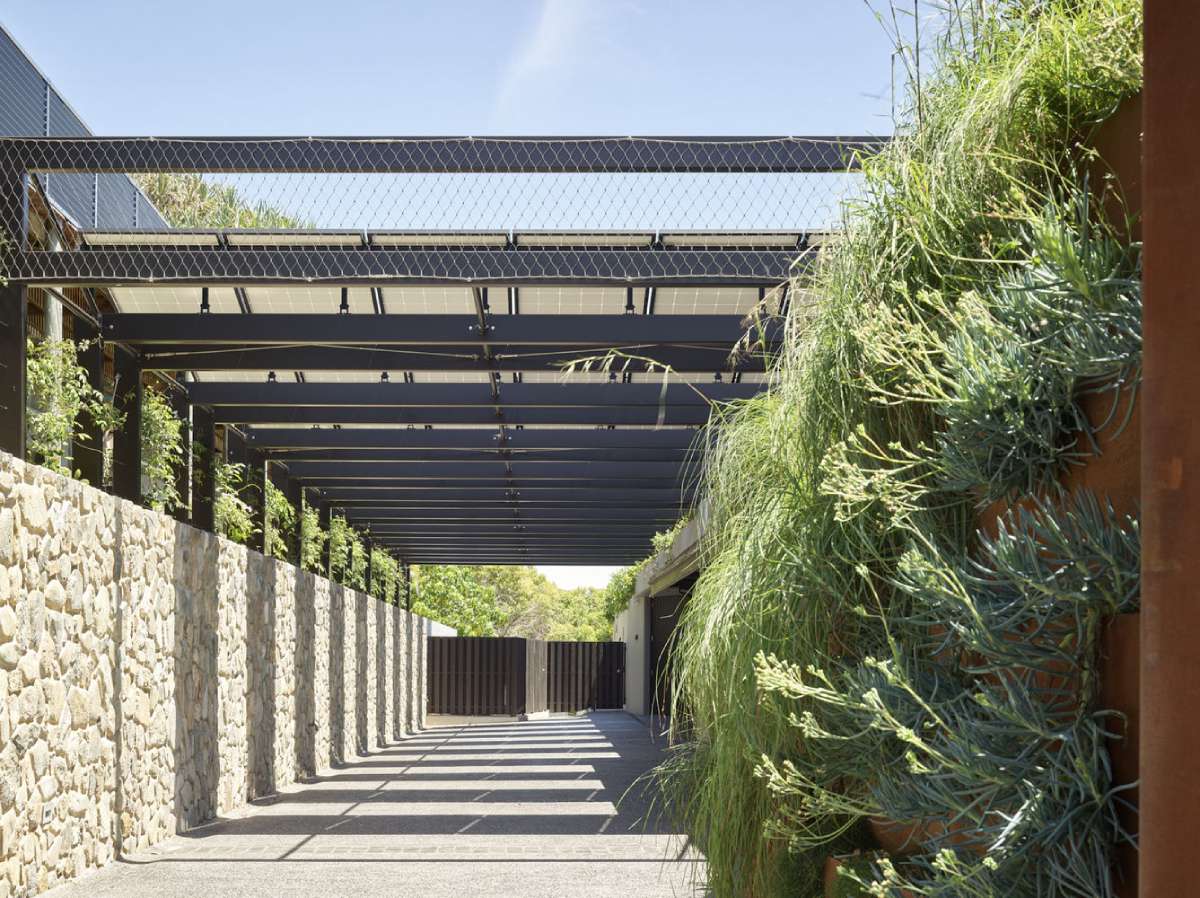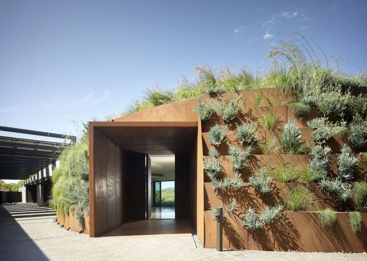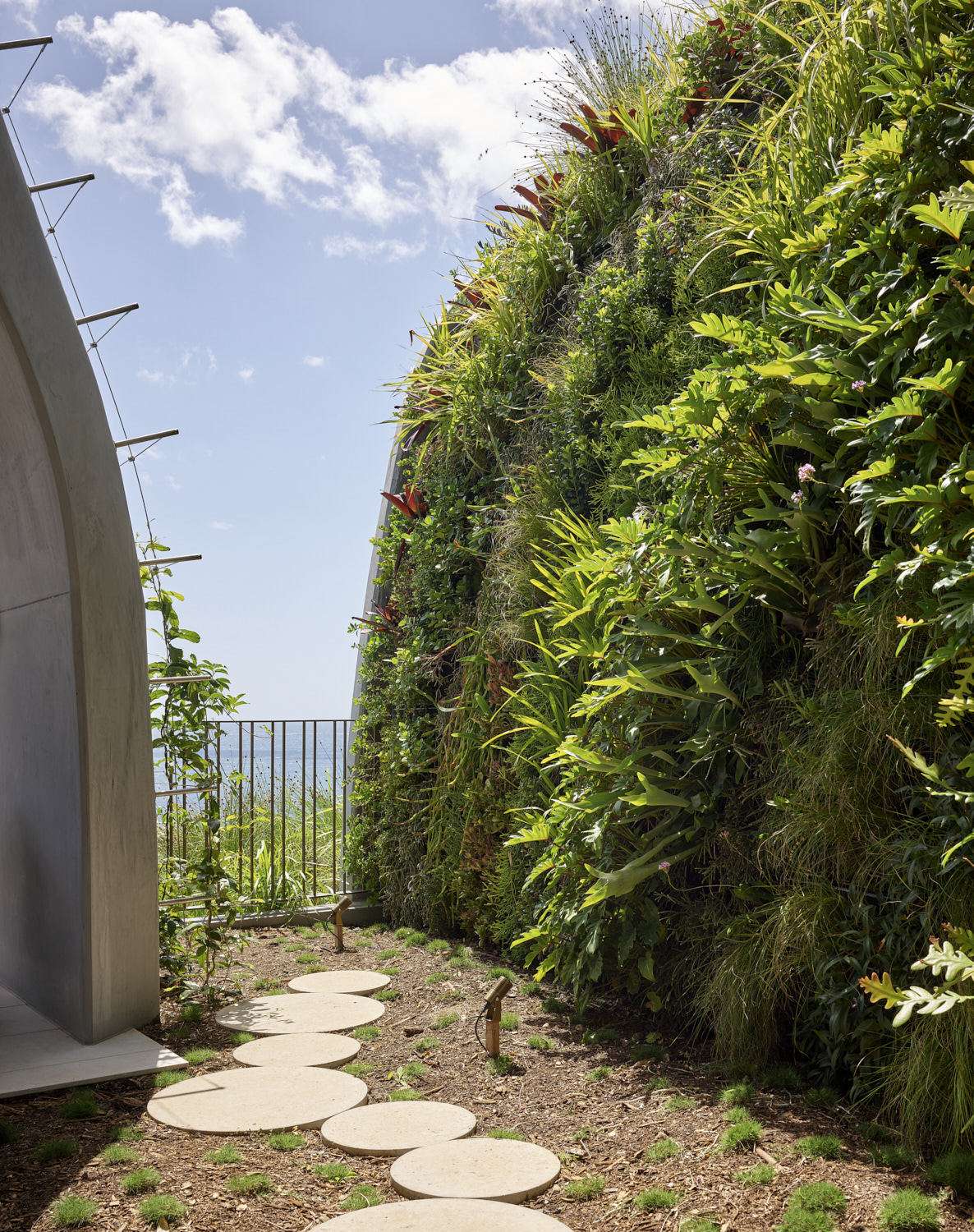 S obzirom na to da je ovaj masivni objekat znatnim delom ukopan u teren, stvorila se mogućnost da se obronci iznad objekta ponovo ozelene. Na ovaj način, gledano sa obale mora, kuća se kamuflira u okolni teren, što će vremenom biti još intenzivnije kada se vegetacija bude razvijala.