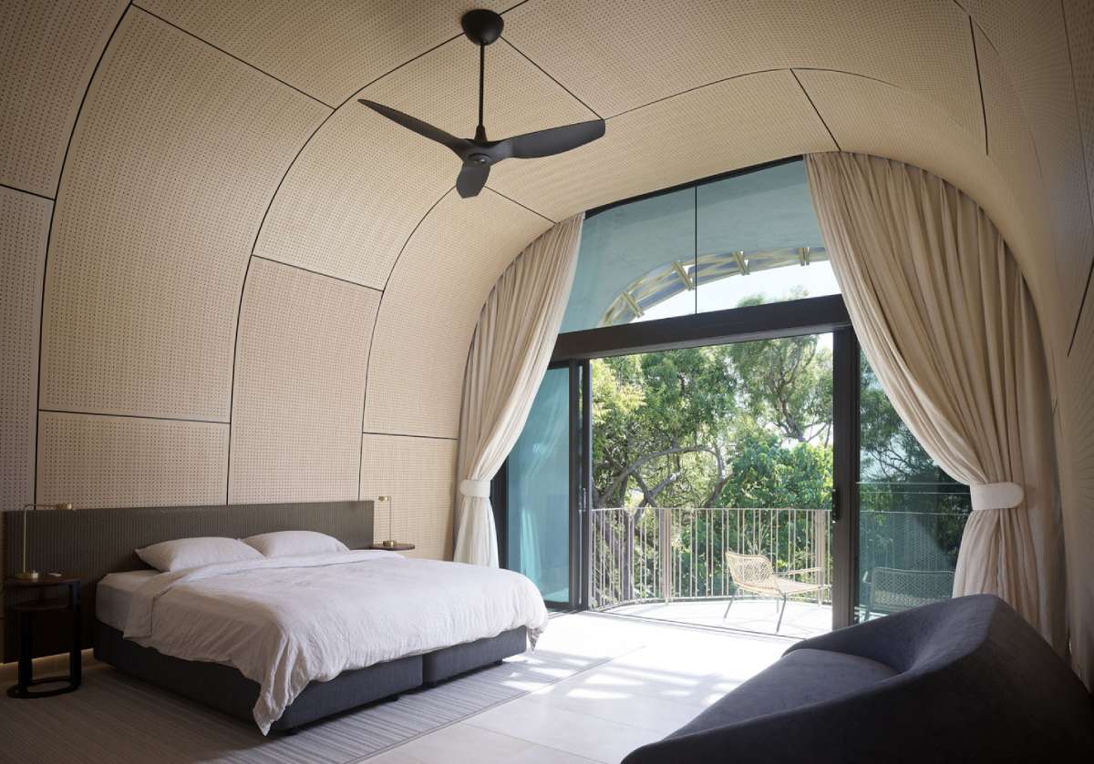 Betonski konstruktivni elementi u formi lukova smanjili su potrebu za stubovima u unutrašnjosti, te se maksimalizovao prostor za postavljanje prozora velikih dimenzija. Takođe, na ovoj način su stvoreni unutrašnji prostori organskog karaktera, koji posebnu atmosferu u spavaćim sobama i dnevnom boravku.