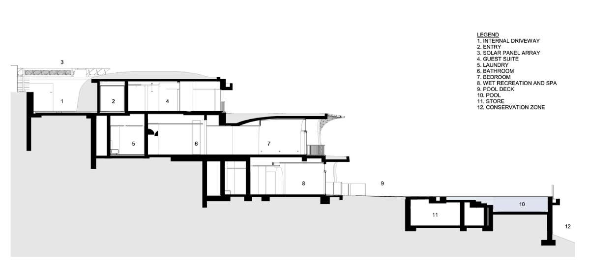 Lokacija za koju je predviđena izgradnja objekta predstavljala je izazovan korak koji je trebalo savladati. Peskovito tlo i strm teren, dodatno je otežano činjenicom da je ovo područje izloženo slanom vazduhu, a u organizacionom smislu lokaciji je ograničen pristup ulici i pritom se nalazi neposredno uz zaštićenu teritoriju, navode arhitekte za ArchDaily. Skulpturalna forma kuće i njeno ukopavanje u teren bili su odgovori na izazove lokacije, ali i želje klijenata. Kuća je izgrađena južno od australijskog nacionalnog parka Noos.