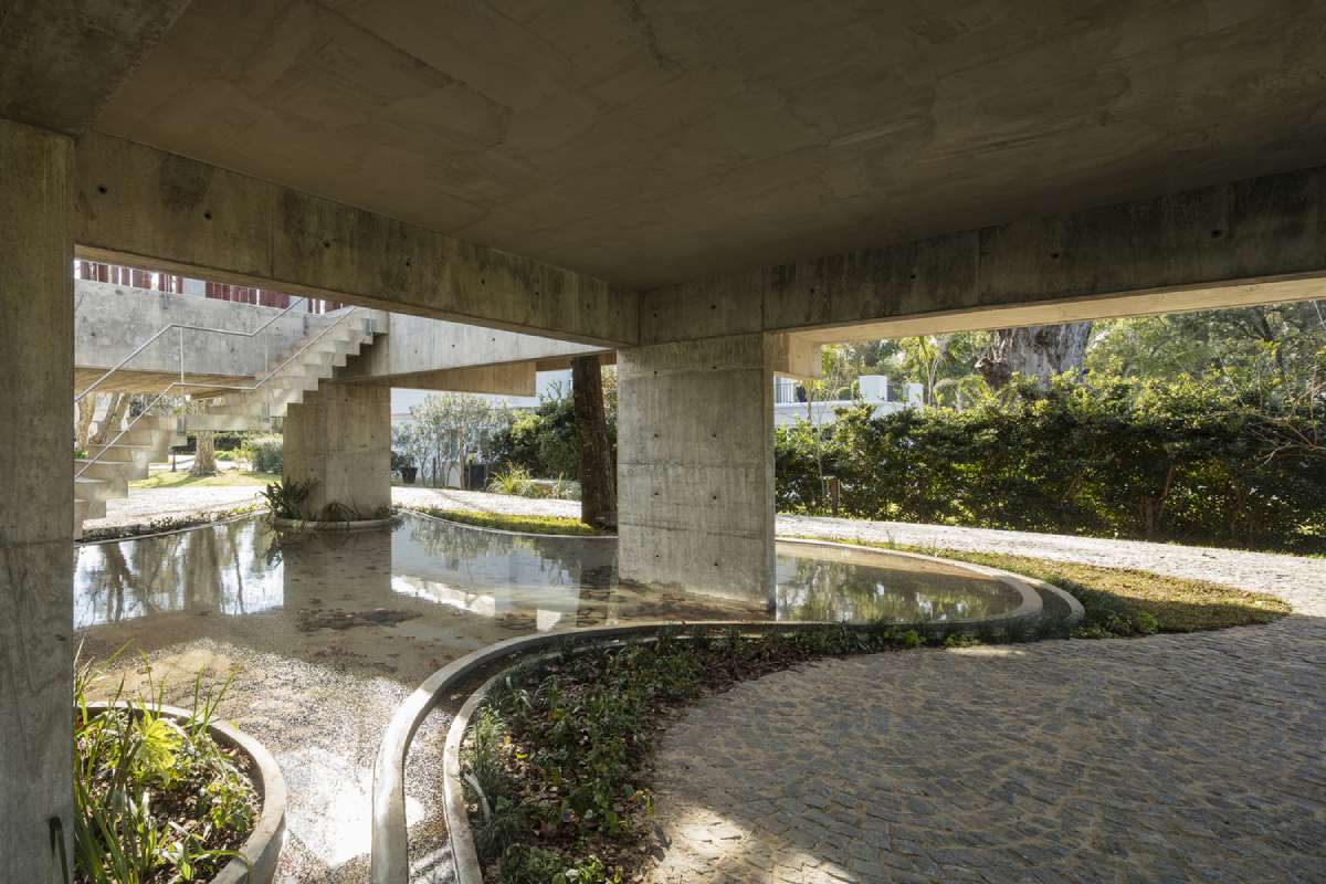 Voda je ključni deo projekta. Ona se u vidu jezeraca provlači ispod samog objekta i čini ovu strukturu još prirodnijom. Element vode je smešten na otvorenom, u centralnom delu kuće, pa zajedno sa prirodnim osvetljenjem i vazduhom čini regulator atmosfere i pravi balans izgrađenog i prirodnog.