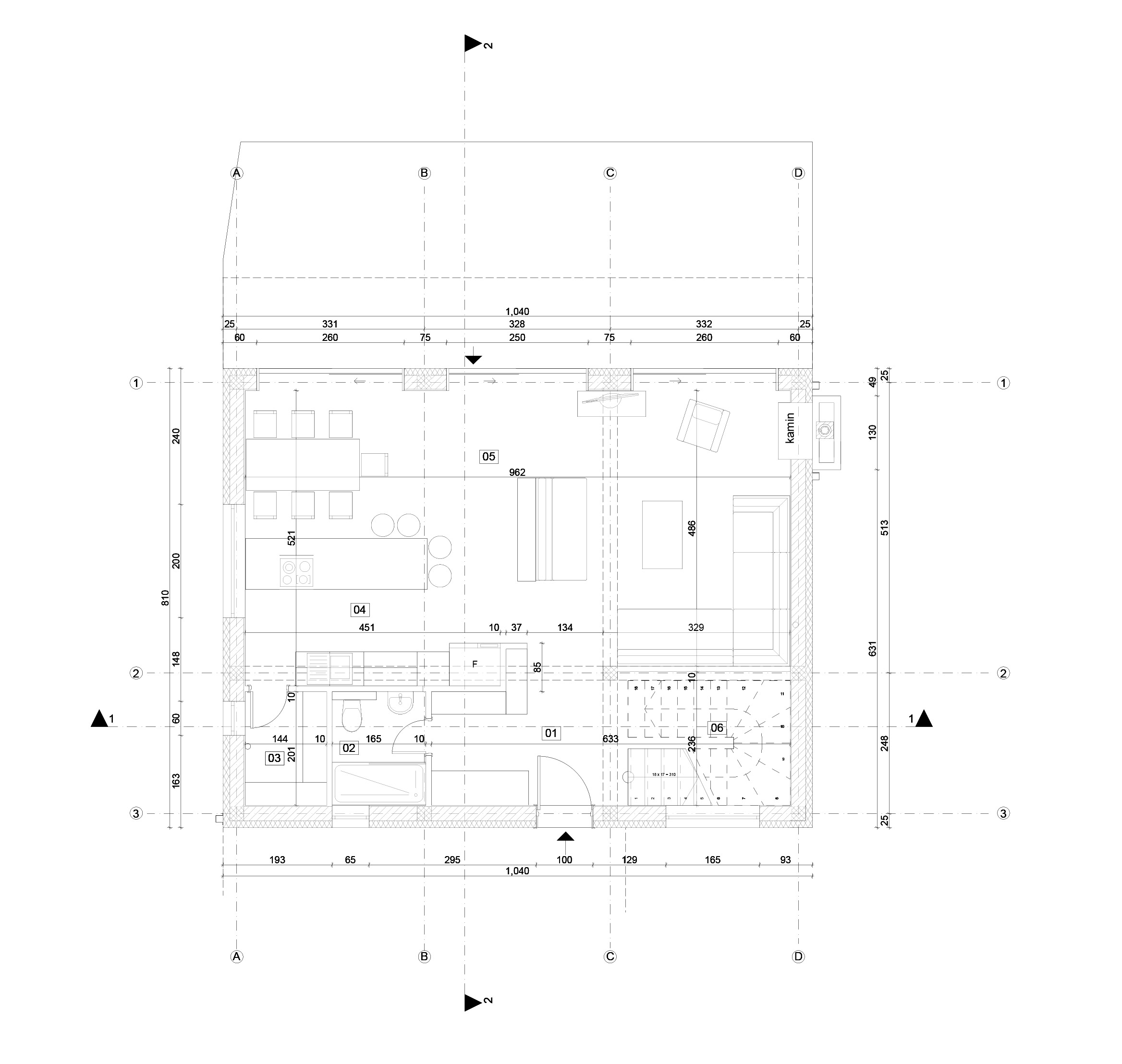 Kuća namenjena četvoročlanoj porodici nalazi na obali Dunava u Sremskoj Kamenici i želja klijenta je bila da se ovakav položaj maksimalno iskoristi, da se postojeće zelenilo maksimalno sačuva i da se vizuelna veza sa rekom ne remeti koliko je to moguće. Veličina parcele i uslovi tako su ograničili projekat na 66 m2 neto površine prizemlja.