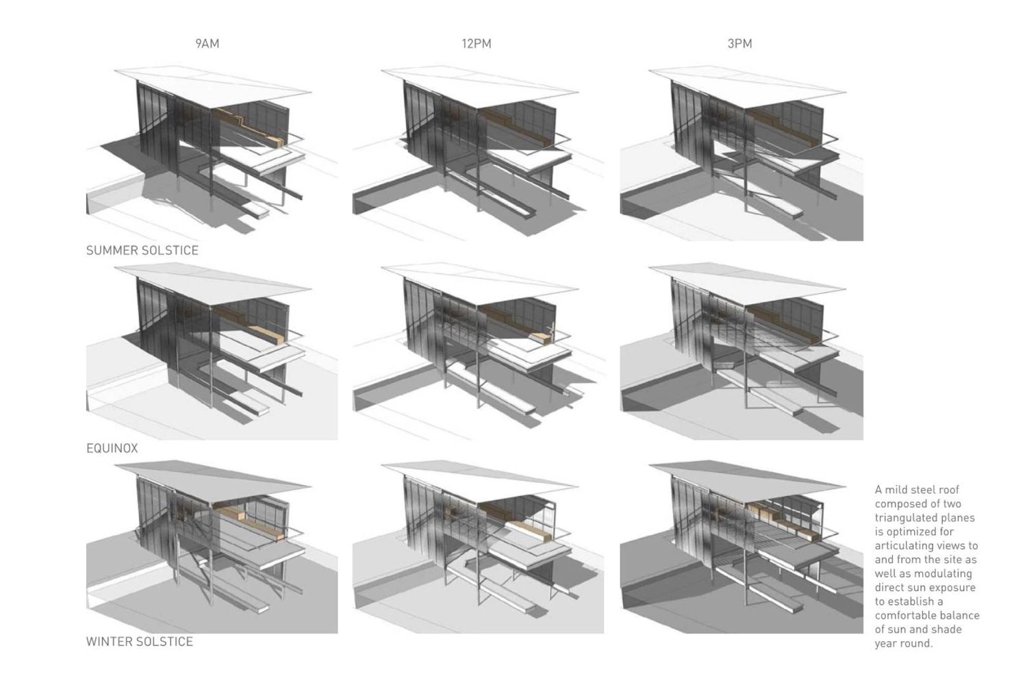„Struktura je kalibrisana da obezbedi ugodnu ravnotežu sunca, hladovine, zaklona i prodora povetarca tokom cele godine. Kako se godišnja doba menjaju, pristanište pruža veću hladovinu tokom letnjih vrućina i dopušta više osunčanosti tokom hladnijih zimskih meseci.“, rekli su iz Matt Fajkus Architecture.