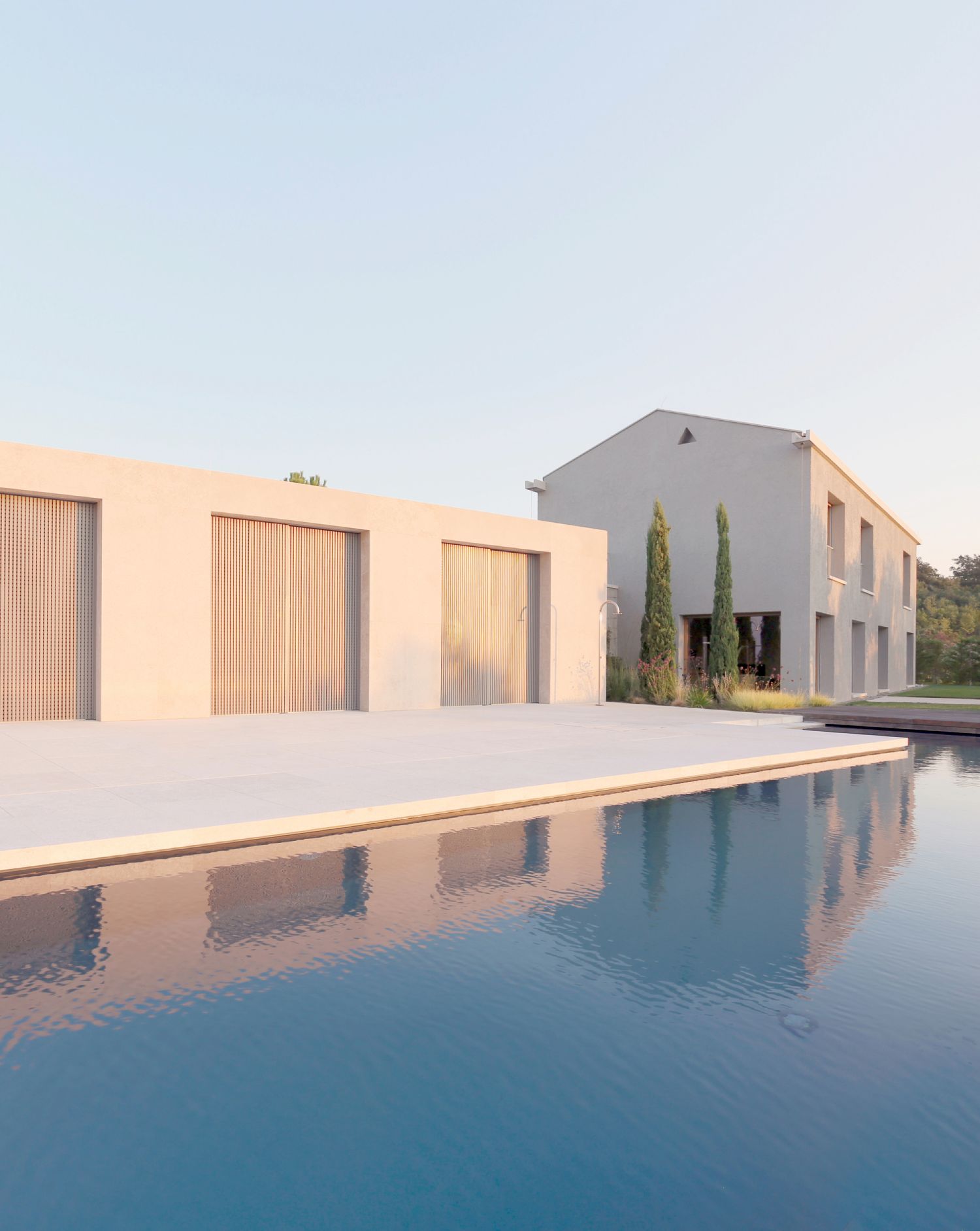 Kuća sa paviljonom ne pokušava da dominira pejzažom, već se u njega diskretno uklapa.