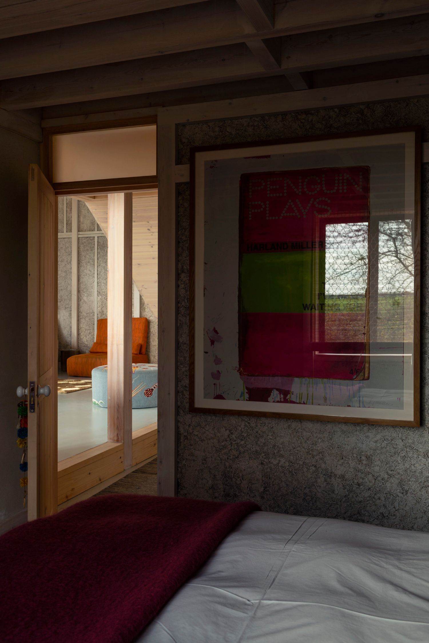 Spavaće sobe i kupatilo su smešteni u prizemlju kuće, zajedno sa prostorom za sedenje dvostruke visine koji je skoro u potpunosti prekriven staklom. Opremljen je komadima drvenog nameštaja i tkanim podnim oblogama.
