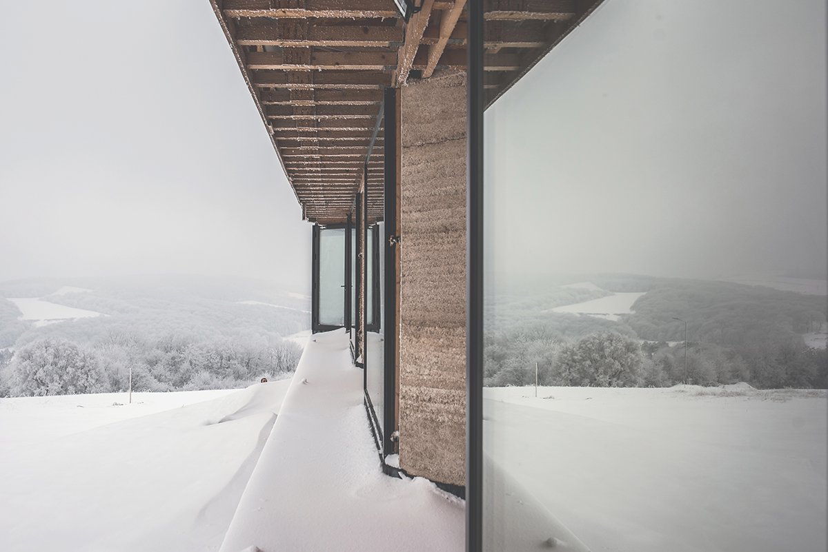 Kao samoodrživi sistem kuća koristi geotermalnu energiju, solarne panele, kolektore kišnice, kompostni sistem kao i baštu za organsku proizvodnju povrća i voća za ukućane. Projekat je modernog i savremenom dizajna usklađen sa morfologijom terena i velikim staklenim površinama koje su uklopljene u konopljine zidove.