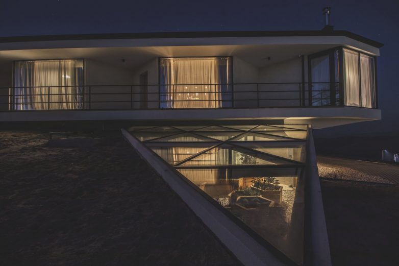 Radi što boljeg iskorišćavanja sunčevog kretanja i pogleda koji se pruža ka planinskim vencima u daljini, kuća je izdužene forme i proteže se iznad višeg platoa, lebdeći nad pejzažom. Izduženi plan je uparen sa velikodušnim prozorskim otvorima od poda do plafona. Objekat ima dva sprata, a glavni program je raspoređen na gornjem spratu u okviru međusobno povezane prostorne osmougaone šeme (pčelinje saće) koja daje prioritet fluidnosti, vizuelnoj i fizičkoj komunikaciji.