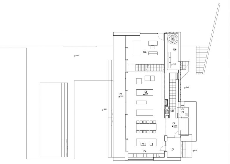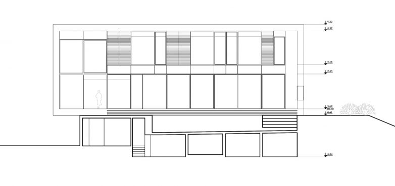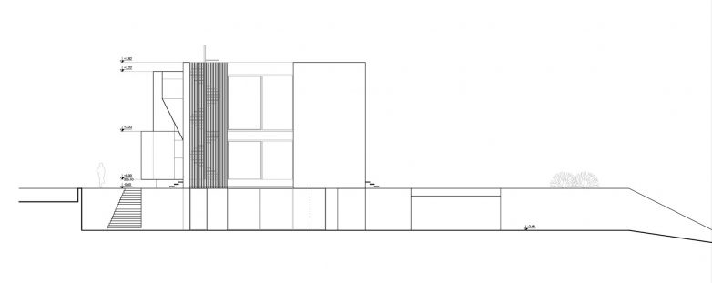Koncept objekta sveden je na dve celine – pravilan beli kubus kuće koji dominira okruženjem i suterensku etažu koja je ugrađena u teren i nevidljiva prolaznicima.