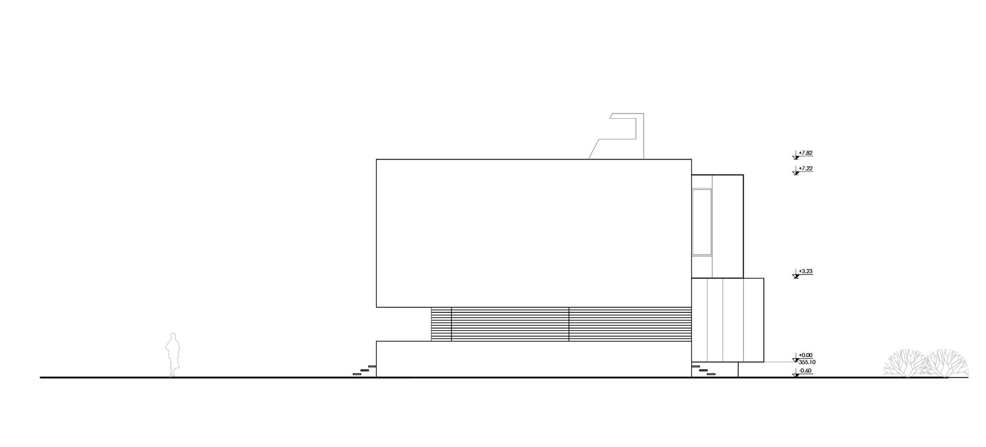 Koncept objekta sveden je na dve celine – pravilan beli kubus kuće koji dominira okruženjem i suterensku etažu koja je ugrađena u teren i nevidljiva prolaznicima.