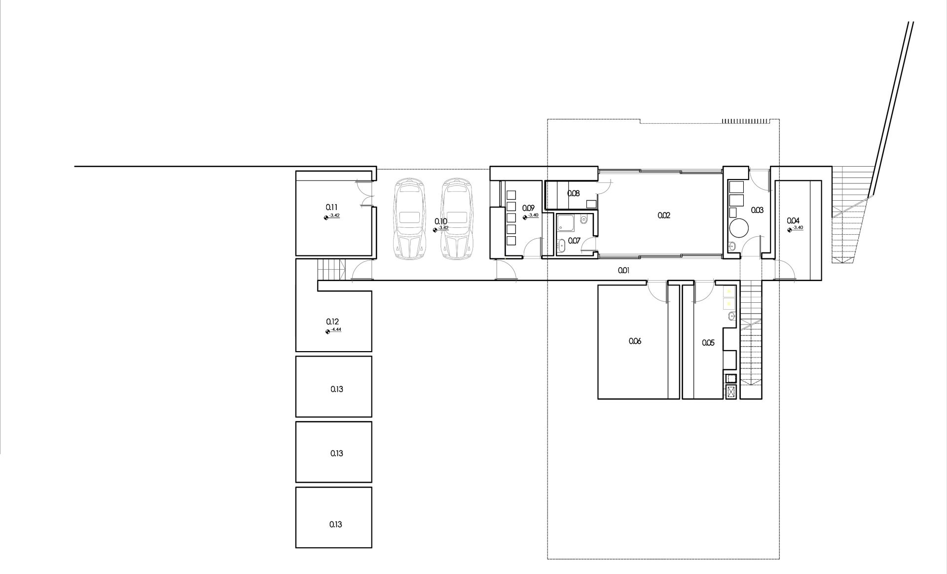 Na najnižoj, suterenskoj etaži u direktnom kontaktu sa terenom i neposrednim okruženjem izdvaja se prostorija za slobodno vreme i rekreaciju sa pripadajućom saunom.