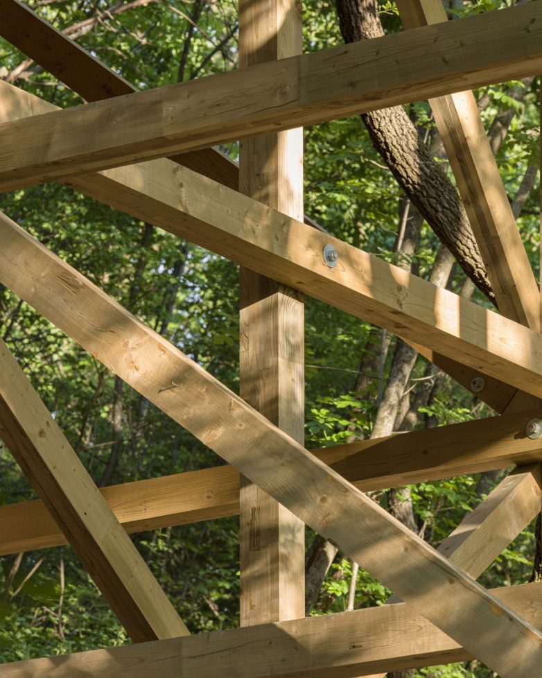 12 nogu nose laganu drvenu konstrukciju, a za izgradnju je bilo potrebno poseći samo jedno drvo.
