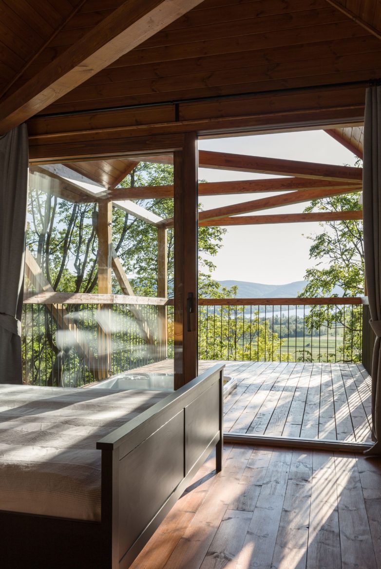 Ova mala vikendica ima kontakt sa tlom samo preko 12 tankih šipova, a cela je napravljena od drveta sečenjem samo jednog stabla.