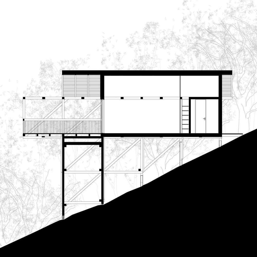 Upravo na toj živopisnoj lokaciji, u okviru porodičnog naselja koje karakterišu objekti malih dimenzija, postavljeni na nizbrdici, usmereni ka dolini i uglavnom okruženi gustom šumskom vegetacijom, podignuta je fascinatna Kuća sa 12 nogu po projektu lokalnog studija RJZS Architects.