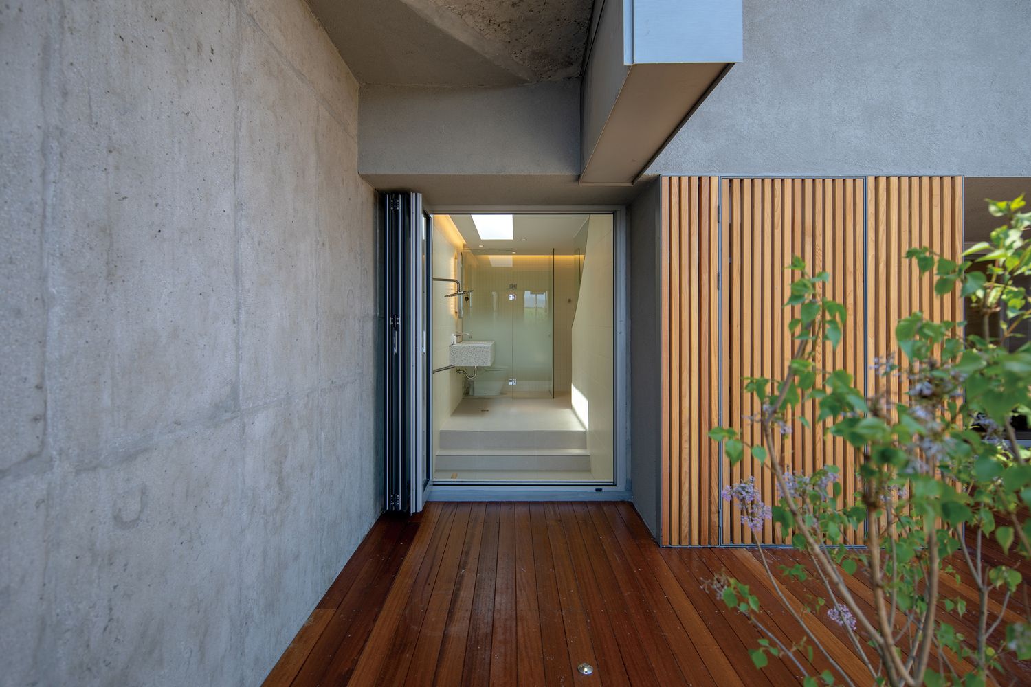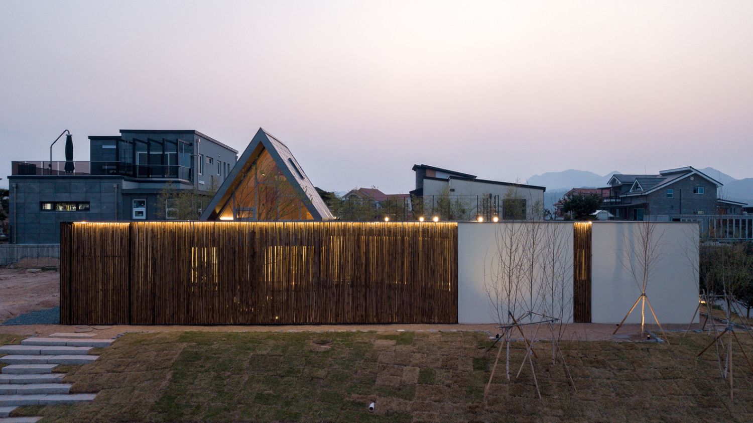 Orijentacija kuće izvedena je u skladu sa prilivom sunčeve svetlosti tokom dana, a kako bi velike staklene površine ostale otvorene a privatnost zadržana, dvorište je ograđeno visokim zidom izvedenim u kombinaciji sa stablima bambusa. Elementi od bambusa se po potrebi mogu klizno delocirati, tako da se kuća otvori ka svom okruženju… a i ka partneru kada ode u prodavnicu.