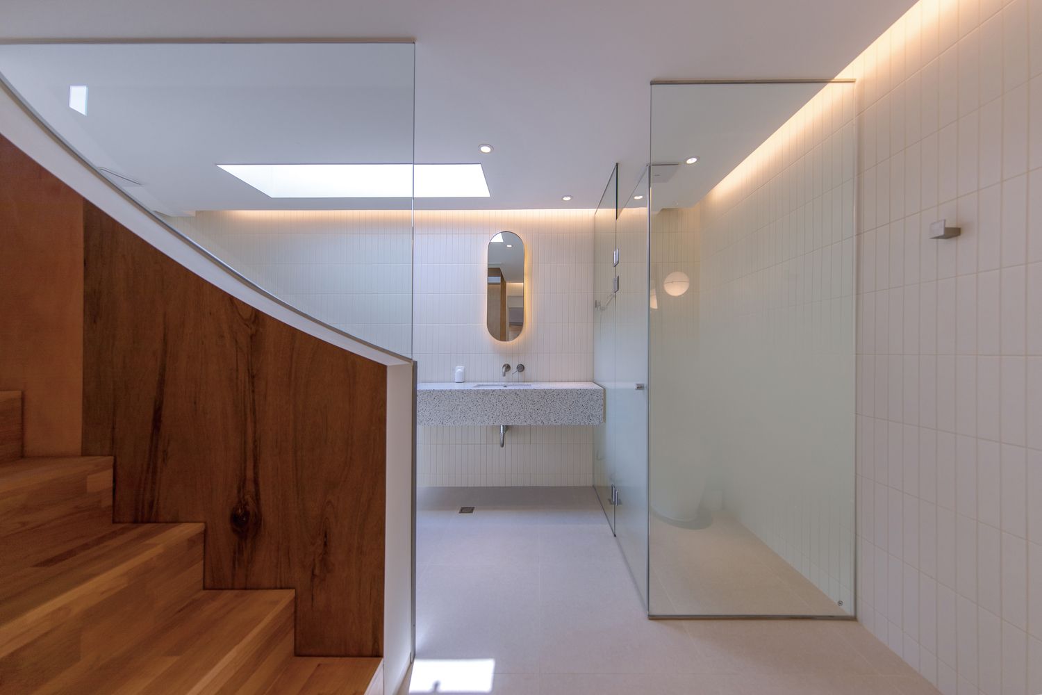 Svi prostori na prizemlju imaju organsku formu i u potpunosti su otvoreni ka dvorištu, tako da dvorište postaje proširenje unutrašnjosti kuće i dnevna svetlost neometano cirkuliše iz otvorenog ka zatvorenom prostoru.