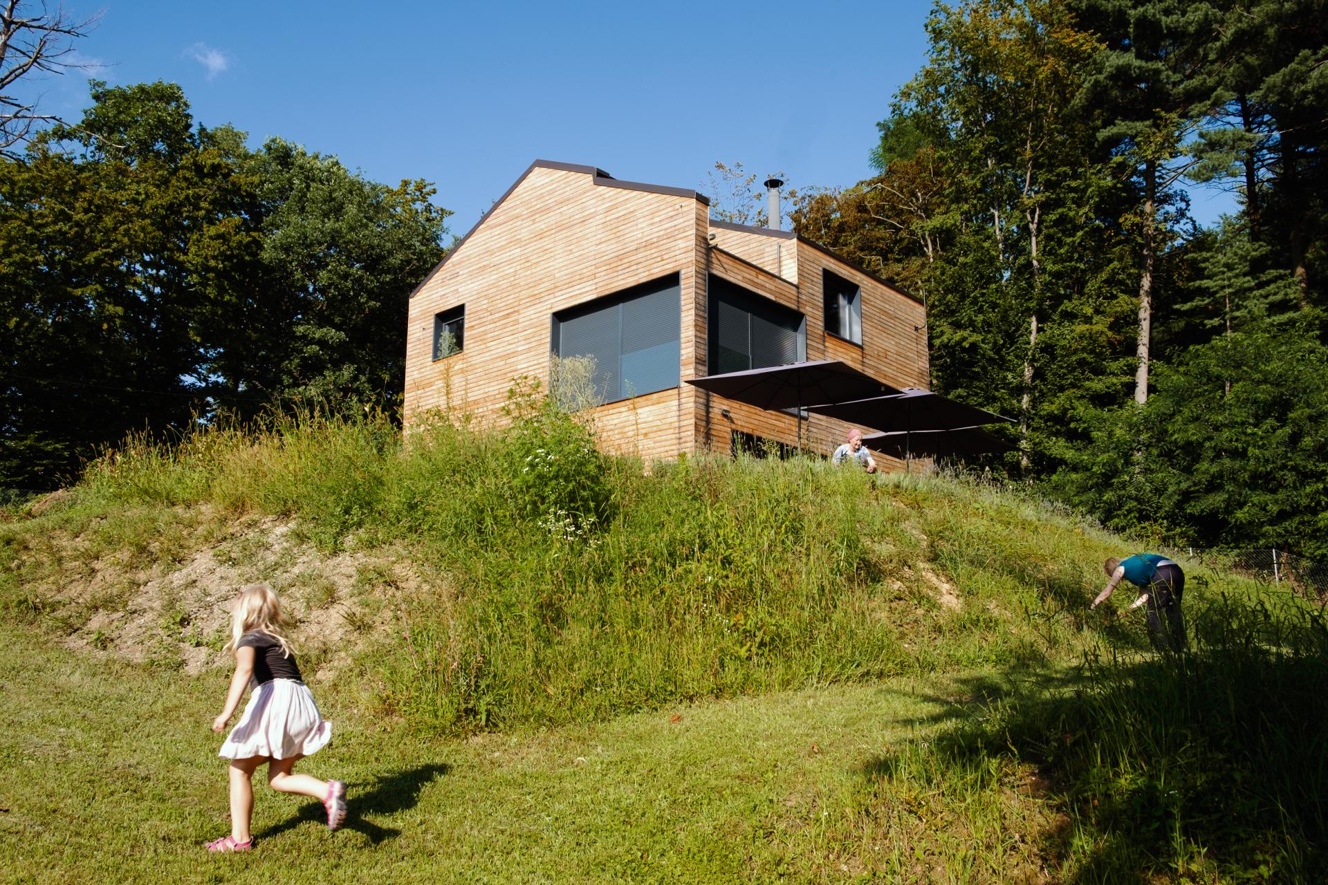 Kuća je projektovana prema potrebama bračnog para. Osim želje za niskoenergetskom kućom i gradnju drvetom, vlasnici su imali ideju da se stvori ugodna kuću povezana s prirodom, koja pruža visok nivo komfora članovima porodice koji u njoj stalno borave ili dolaze u posetu. Važno im je bilo unutar zadane kvadrature postići tri spavaće sobe s sopstvenim kupatilima kao i zajedničke prostore za druženje, radni deo i biblioteku. Takođe, imali su i neke želje u enterijeru, iz kojih je proizašao „soft“ industrijski stil uređenja.