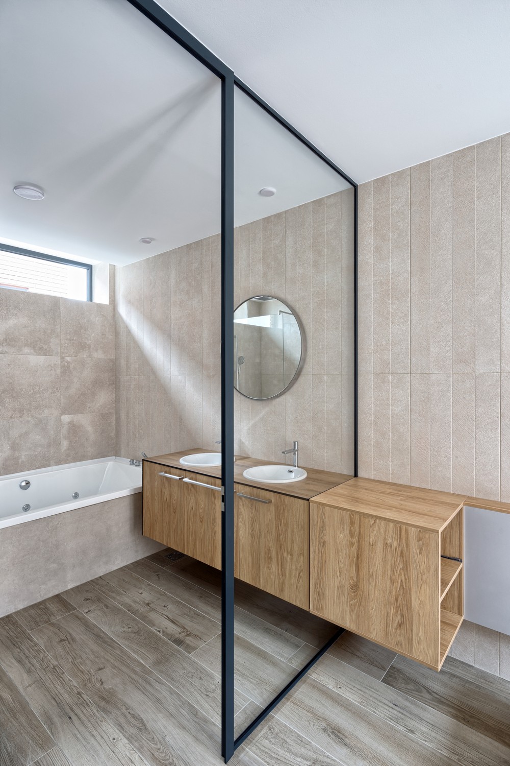 Sve tri sobe dele zajedničku terasu, dok jedna od njih ima i izlaz na lođu. Dečije kupatilo je odvojeno od roditeljskog, do kojeg se stupa direktno iz njihove spavaće sobe. Takođe je predviđeno da roditeljska spavaća soba sadrži garderobu, vežbaonicu i saunu. U enterijeru preovladavaju svetli, neutralni tonovi, sa detaljima poput staklenih panela umesto gelendera.