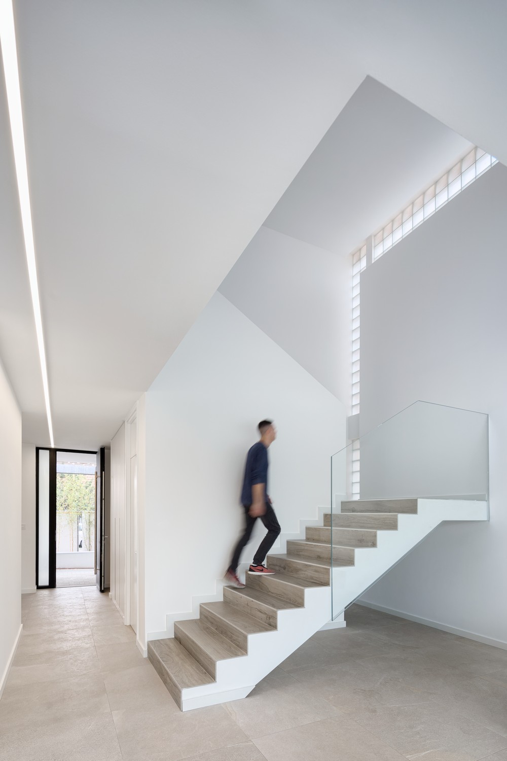 Na spratu su smeštene spavaće sobe za roditelje i decu. Spavaća soba roditelja okrenuta je ka ulici i ima izlaz na balkon delimično oivičen čipkom od opeke. Dečije sobe su okrenute ka dvorištu i fleksibilno su projektovane tako da po potrebi mogu da formiraju jedinstveni prostor ili pak tri potpuno odvojene sobe.