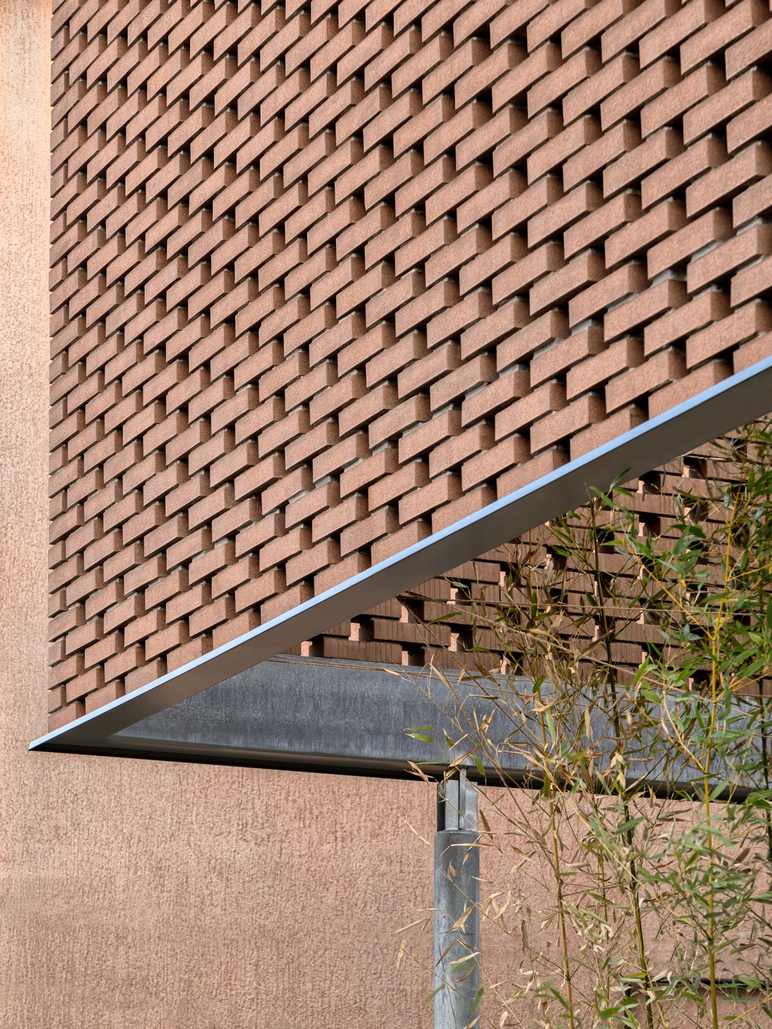 Međutim, ono što je svojstveno ovom projektu jeste da čipka od opeke obuhvata samo zonu sprata oslanjajući se na vitki čelični stub i betonski stubac koji konzolom od 4 metara podupire balkon. Čitava struktura je u svojoj bazi oslonjena na armirano-betonsku konstrukciju i čelične nosače, dok su spojevi opeke takođe armirani čeličnim rasterom.