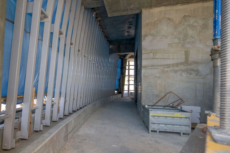 Kosi stubovi imaju veoma visok stepen iskorišćenja, pre svega u pogledu aksijalnih sila. Projektom su usvojeni kao AB stubovi, sa procentom armiranja od 4% van zone preklopa armature, što odgovara maksimalnom procentu armiranja definisanim pravilnikom Evrokod, dok je za beton usvojena klasa C55/67, koja nije uobičajena u zgradarstvu u Srbiji, kaže Uroš Marković iz DNEC-a.