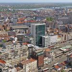 Gradilište snimljeno iz vazduha otkriva kako nova kulturna stanica u Novom Sadu dobija svoj prepoznatljiv oblik.