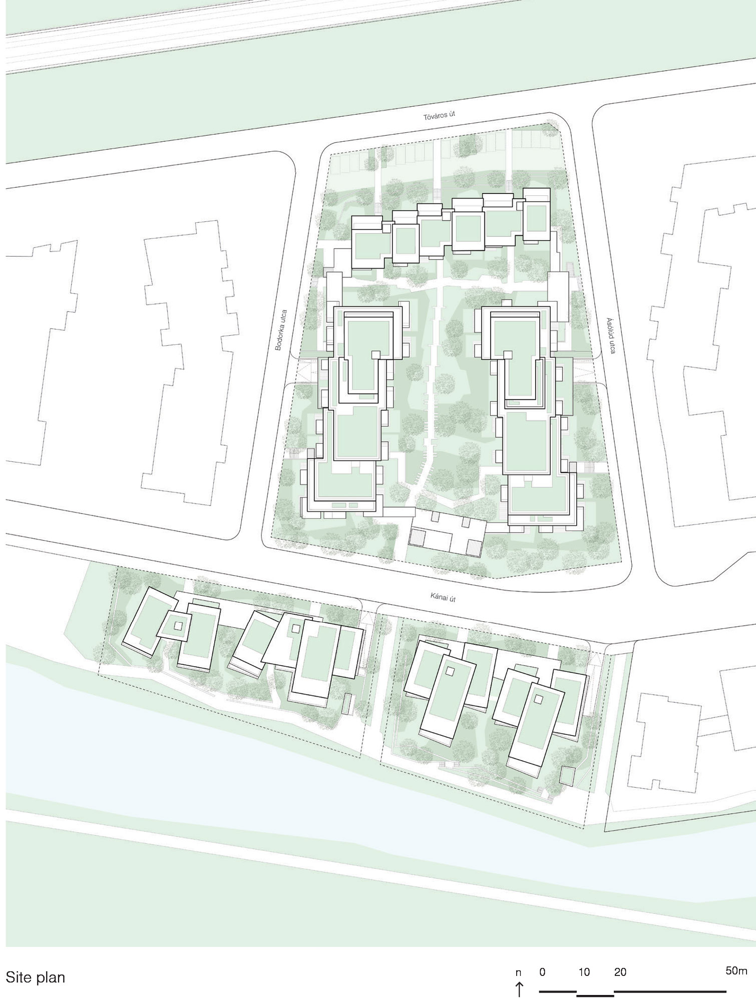 Kompleks sa geotermalnim sondama do 150 metara dubine, sistemom za zadržavanje kišnice i zelenim krovovima pokazuje kako održiva tehnologija oblikuje novu stambenu tipologiju u Budimpešti.