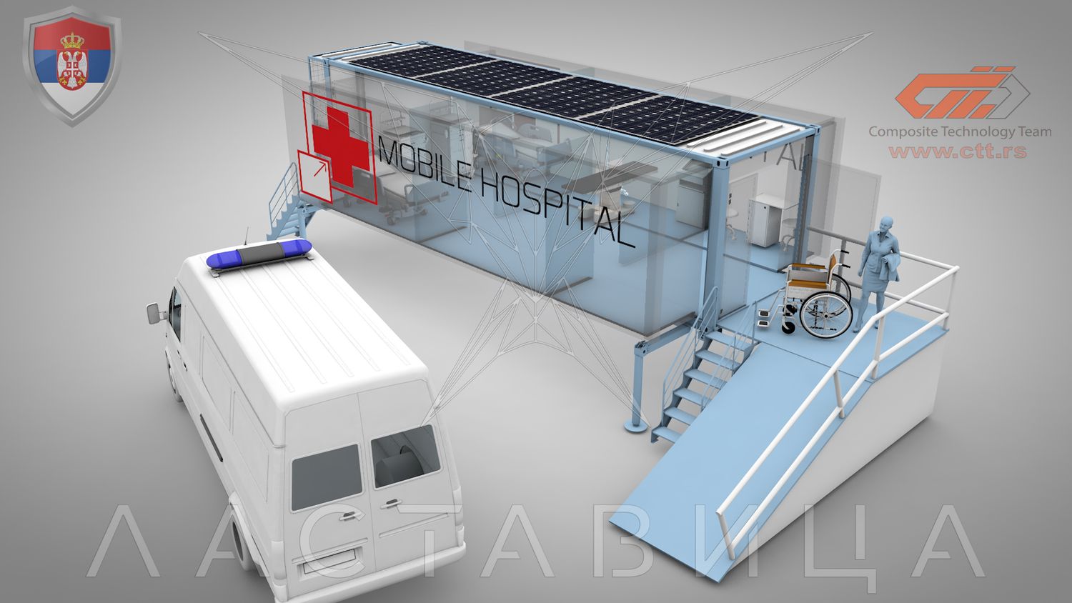 Beogradska firma CTT razvila je ne samo mobilne jedinice koje se koriste u kriznim vremenima kao terenska ambulanta ili hirurška sala, već i kompletan sistem za podizanje modularnih bolnica.