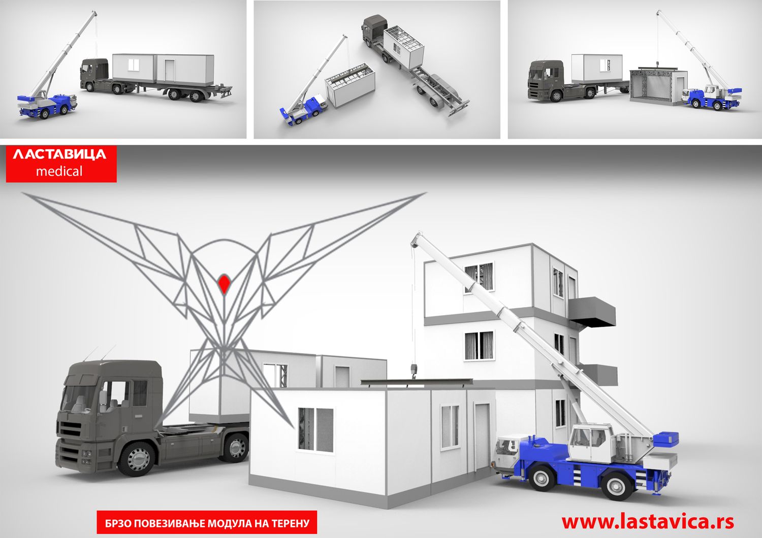 Beogradska firma Composite Technology Team (CTT), osnovala je odeljenje za inovativnu gradnju Lastavica, sa ciljem da prikaže i upotrebi inovacije koje već duže razvija, a vezane su za prefabrikovane građevinske strukture. Pored toga, ovo preduzeće je 2016. godine razvilo hidrauličku platformu namenjenu lakom utovaru kontejnerskih modula na kamione. Ova platforma je našla primenu kod ski simulatora Snow Sim, ali je ovaj inovativni tim krenu da širi njenu primenu i da je koristi kao osnovu za razvoj sistema koji traže veliku mobilnost svim transportnim sredstvima (kamionski, brodski, železnički, avio) laku i brzu instalaciju. Jedna od primena koju je ovaj inovativni tim tada predvideo je primena hidrauličke platforme za potrebe izrada mobilnih ambulanti.